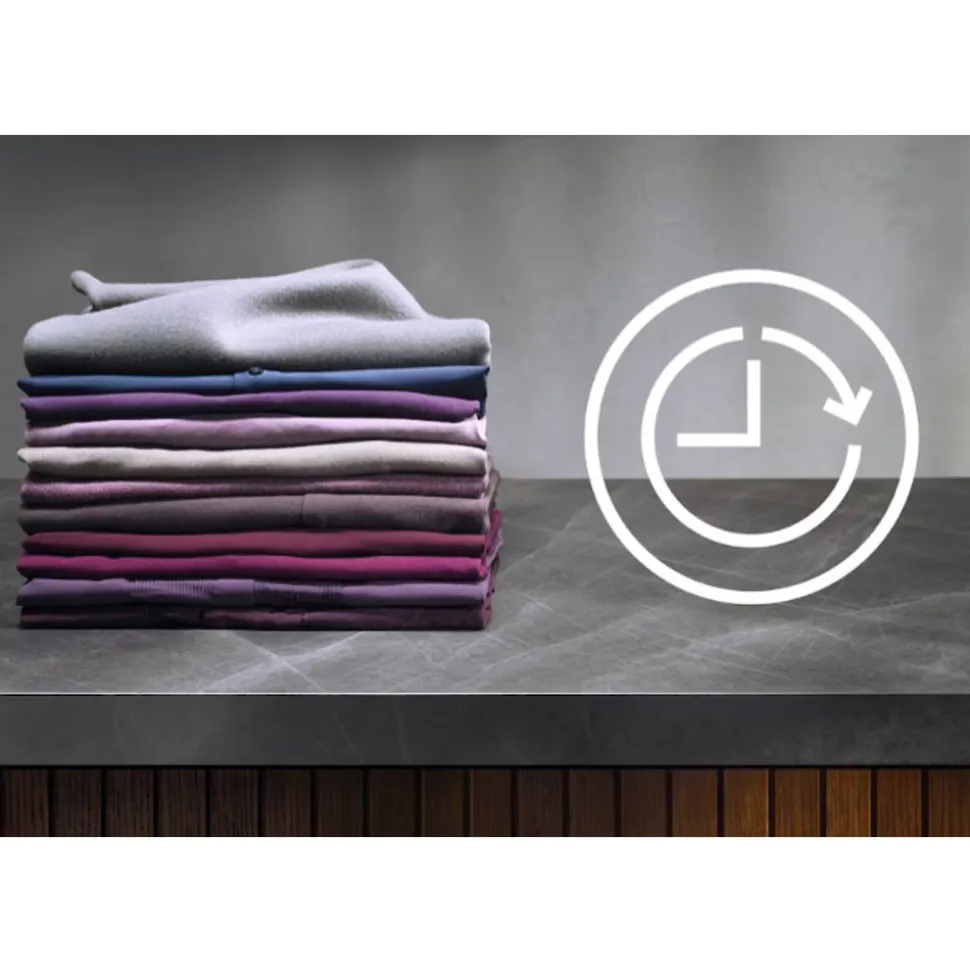 De geavanceerde vochtigheidssensoren van PreciseDry helpen tijd en energie te besparen. Ze passen de tijd en het energieverbruik proportioneel aan op basis van de lading. Geven de juiste zorg aan elke lading, zodat kleding er langer op zijn best uit ziet en aanvoelt.