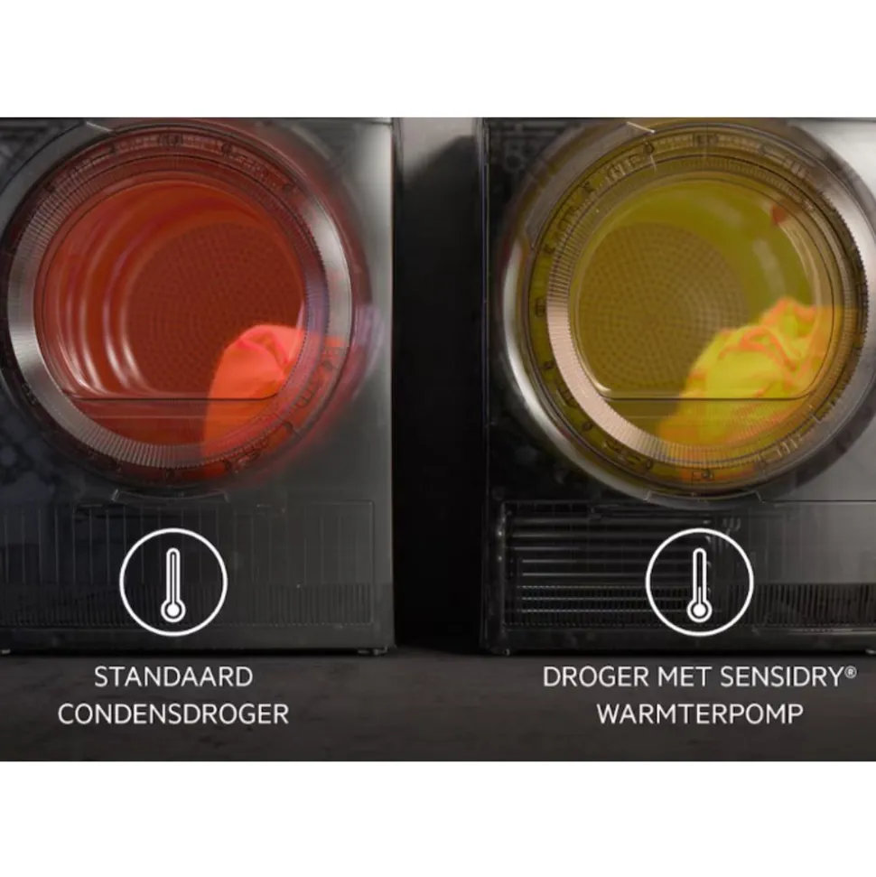 De 7000 serie SensiDry® droogkast maakt gebruik van warmtepomptechnologie en droogt kleding gelijkmatig, op lage temperaturen, zonder de droogtijd te verlengen. Mild drogen zorgt ervoor dat kledingstukken nooit worden blootgesteld aan onnodige hitte, zodat je kleding langer meegaat.