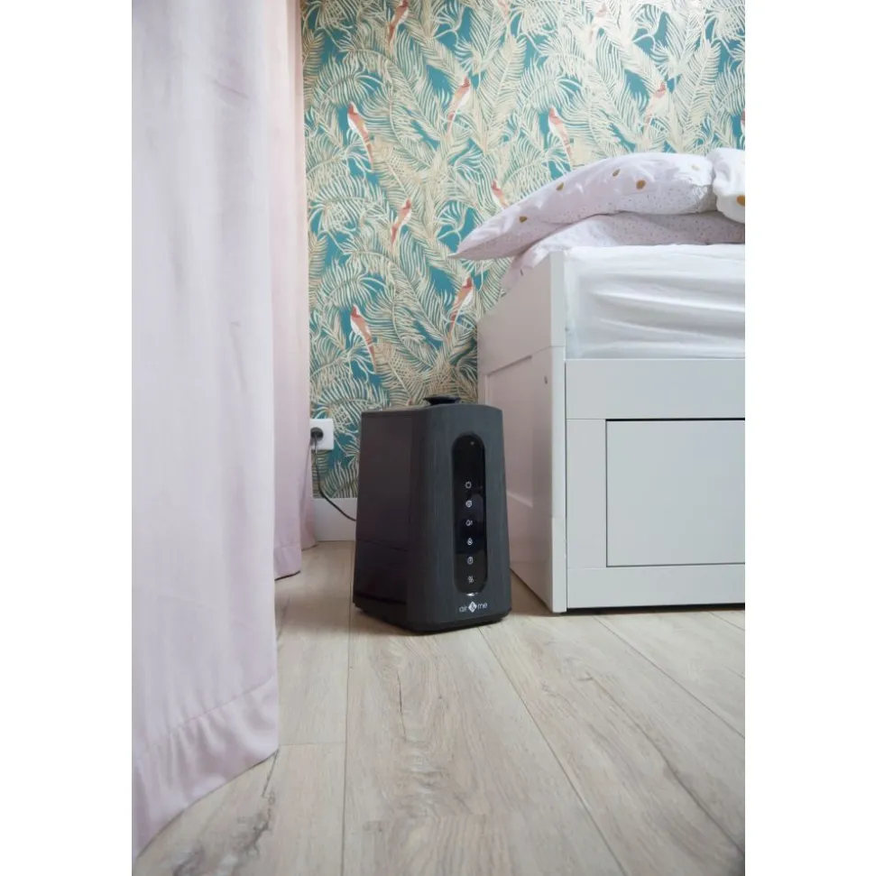 Qua design mag de Air & Me Clarence er alvast wezen met zijn zwarte wood look. Met zijn talrijke functies, waaronder de HygroSmart® die zorgt voor een automatische regeling van het toestel en zijn 5 L waterreservoir, voldoet hij aan de hoogste eisen. Voor een gezonde en optimale verneveling beschikt de Clarence over een ionisator en 2 bevochtigings- modi: koude en warme nevel (40-45°). Bovendien is de bediening van het apparaat zeer praktisch dankzij de besturing op afstand via een app.