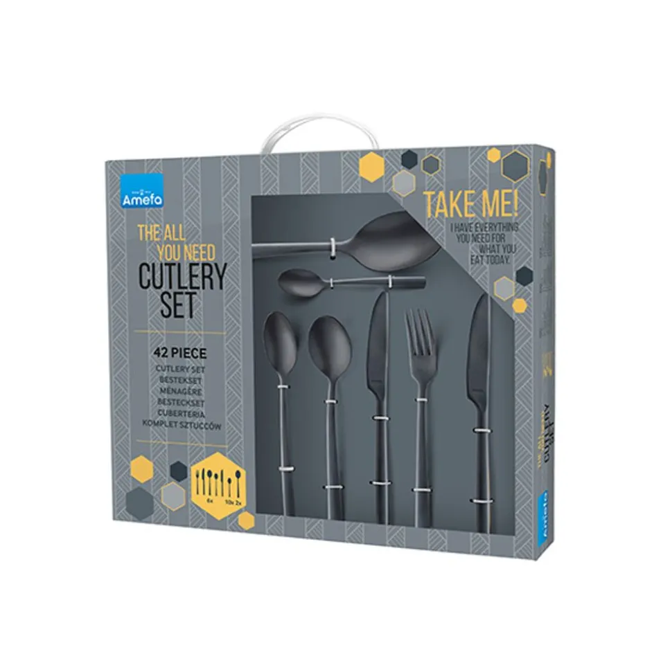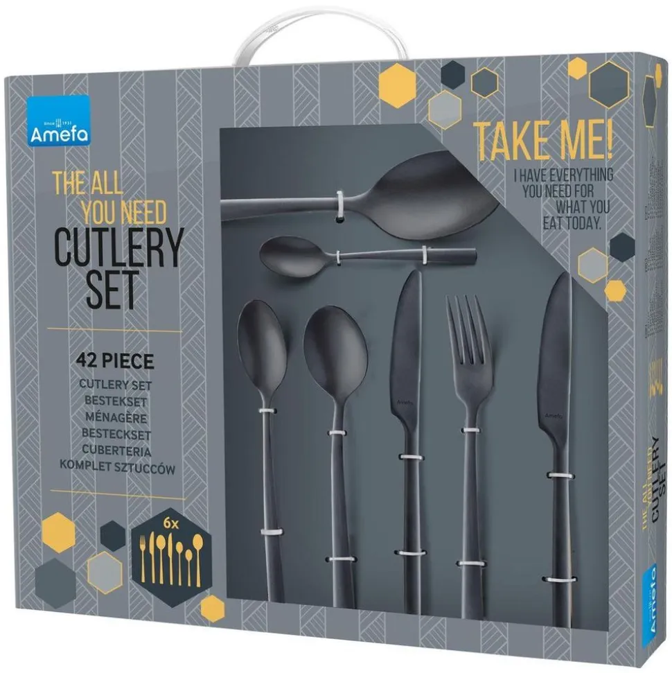 Manille zwart is verkrijgbaar in een 16-delige set voor 4 personen en in een 42-delige All You Need Set voor 6 personen.
