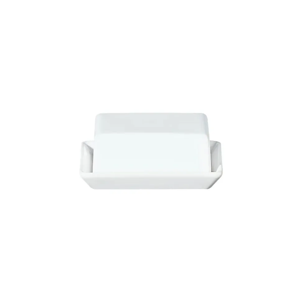 Witte botervloot van hoogglans porselein. De botervloot (16,5 x 13,5 cm, hoogte 7 cm) bestaat uit een bodem en deksel, bevat een standaard stuk boter en verfraait uw ontbijttafel met zijn eenvoudige en tijdloze design . De ASA Selection grande is een servies voor elke dag en overtuigt door zijn hoogwaardige porselein, zijn sneeuwwitte oppervlak en zijn elegante glans. Maak je ontbijttafel compleet met onze borden, kopjes en accessoires uit de grande serie!