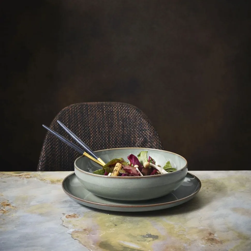 De serviesserie “saisons” in de kleur “eucalyptus” wordt in een familiebedrijf in Portugal met de hand gemaakt van steengoed en maakt indruk met zijn unieke, levendige glazuur. Een subtiel blauwgroen met witte componenten gecombineerd met een fijn contrasterende rand maakt de serie tot iets bijzonders. Geïnspireerd door de natuur. Geïnspireerd door eucalyptus. Hoe verschillend de bladvormen van de eucalyptus ook kunnen zijn, zo verschillend kan het reactieglazuur ook zijn. Dit maakt elk stuk uniek. Verschillende vormen voor elke gelegenheid.