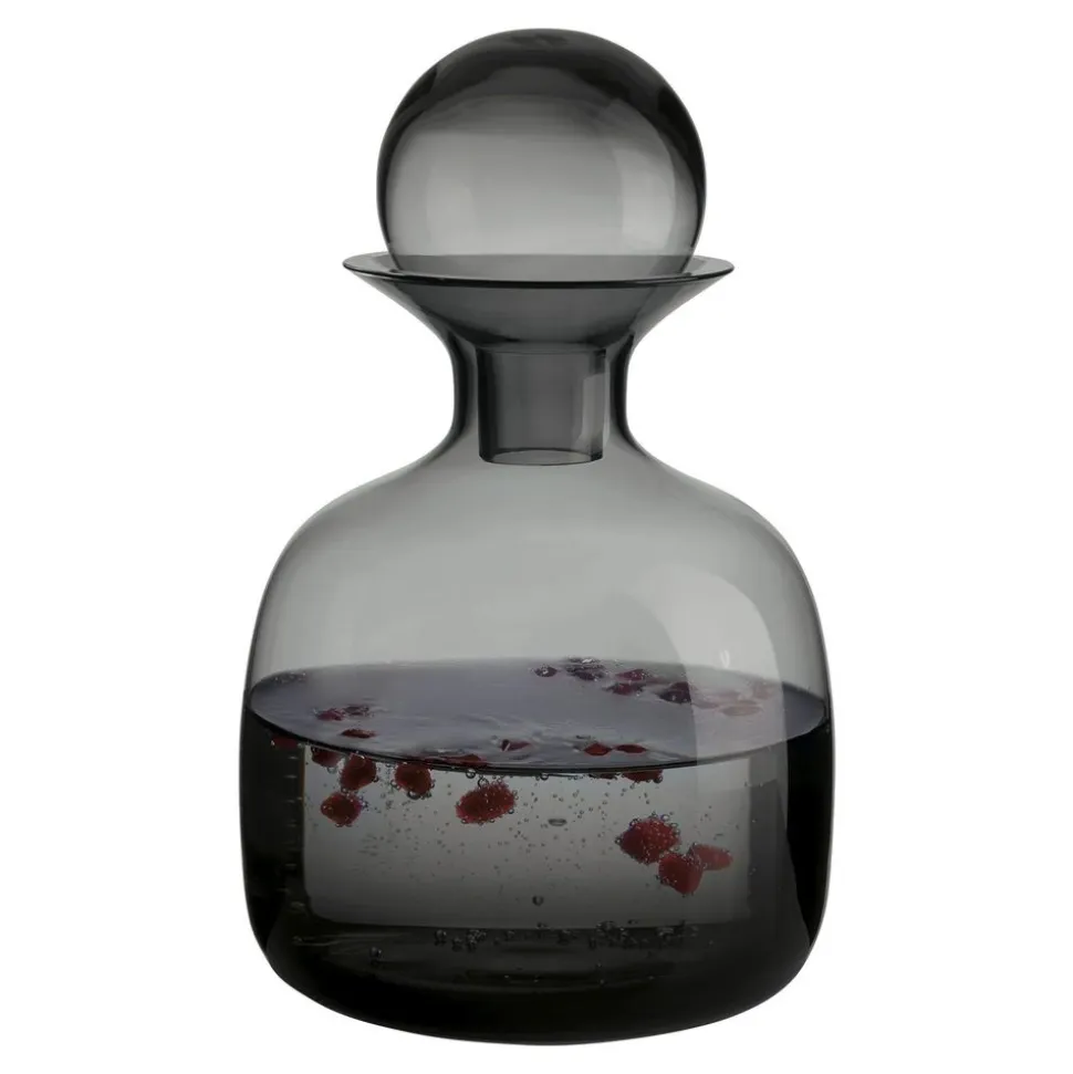 De mondgeblazen glascollectie Sarabi combineert design, genot en functie. Net als de glazen is de karaf, die verkrijgbaar is in twee maten geschikt voor consumptie, een zintuiglijk en design hoogtepunt in de huisbar. Met slechts een vleugje kleur stralen de karaffen in het “grijze” decor koele elegantie uit. De karaffen worden aangeboden in een geschenkverpakking.