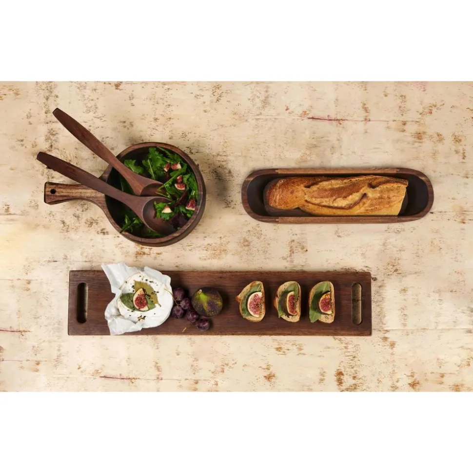 Grote houten plank op pootjes uit de ASA Selection houtserie. Met een lengte van 60 cm, een breedte van 13 cm en een hoogte van 3 cm biedt deze grote houten plank voldoende ruimte voor heerlijke baguettes, kleine hapjes, vers fruit en kaas- en worstspecialiteiten. De donkerbruine tint van het acaciahout harmonieert perfect met wit of gekleurd porselein, b.v. B. uit de ASA Selection serie apero novo.