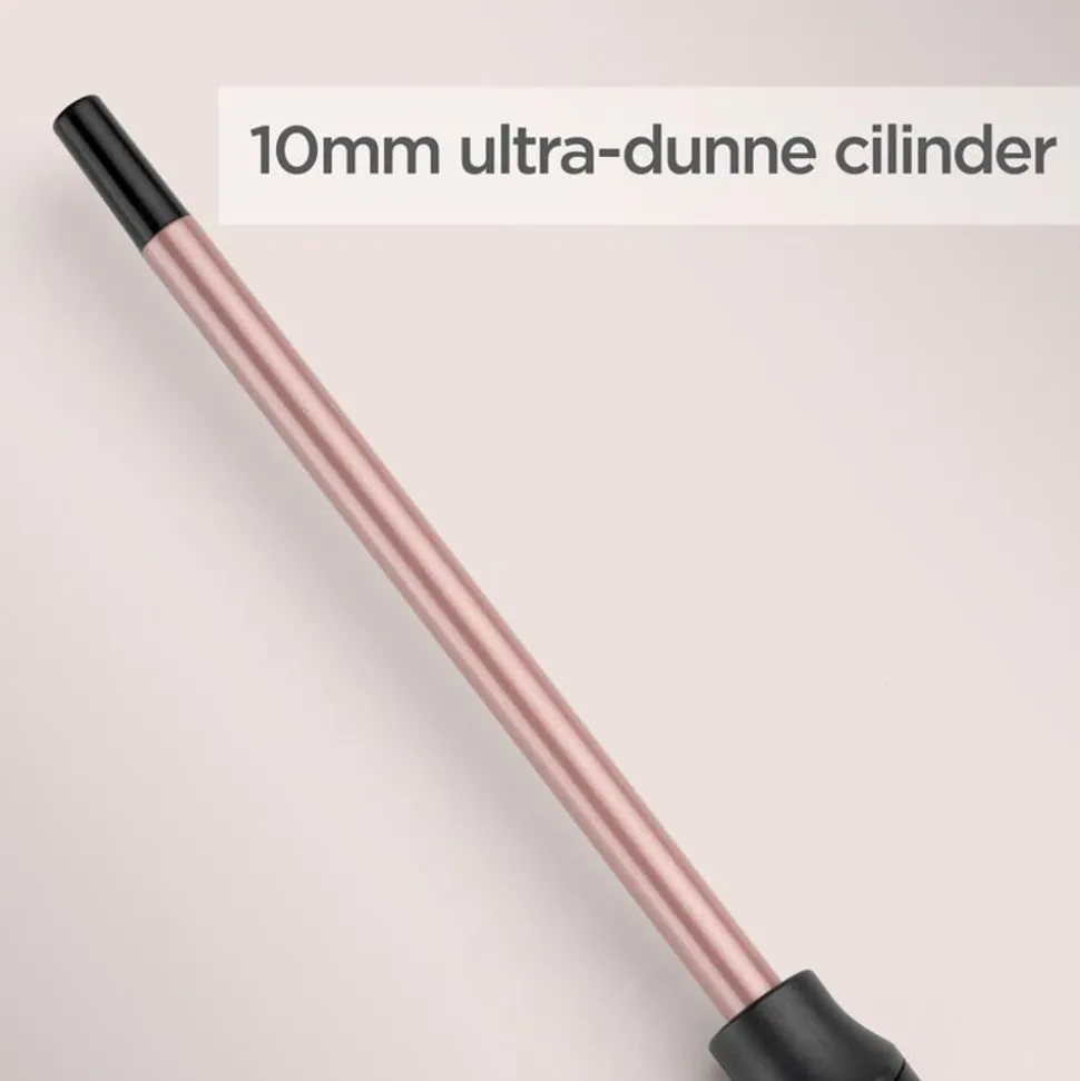 Deze Tight Curl Wand creëert kleine krulletjes die lang in model blijven, voor een glamoureus avondje of om textuur toe te voegen of te definiëren. De ultrasmalle keramische cilinder van 10 mm garandeert in een mum van tijd perfect gedefinieerde krullen. De tang heeft ook een lange cilinder om het krullen van langer haar makkelijker te maken.