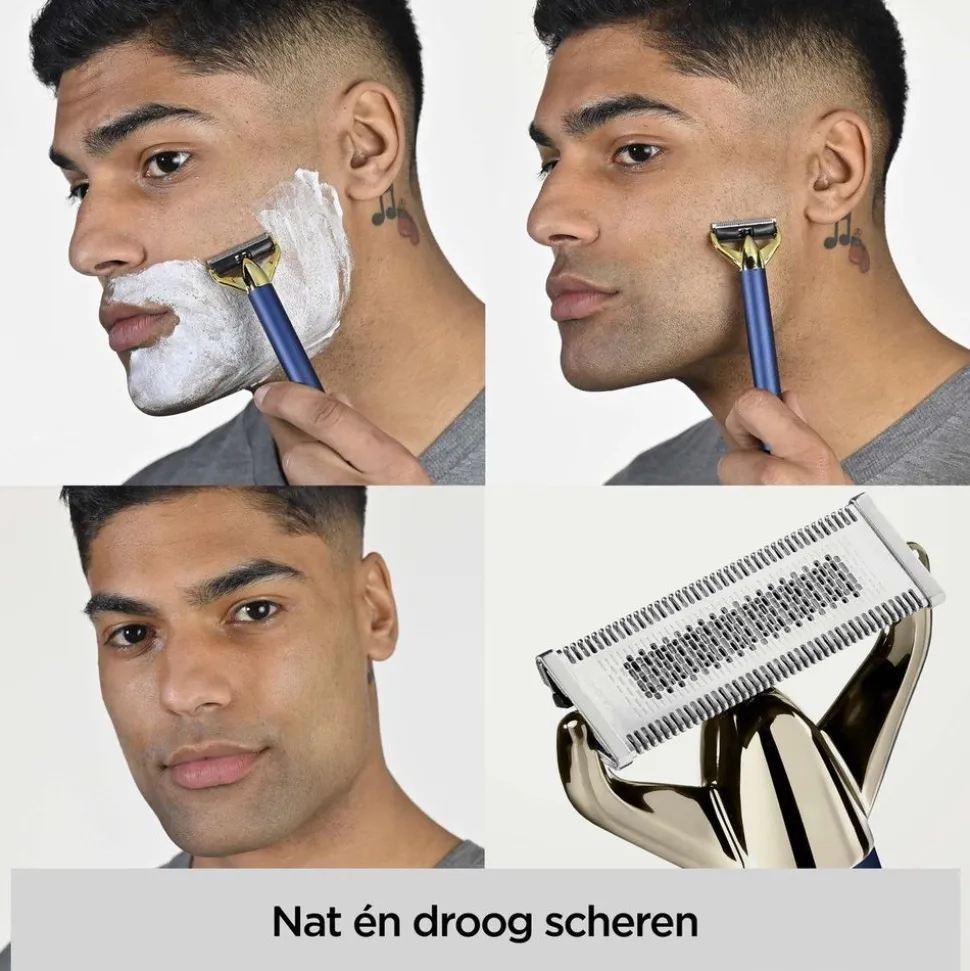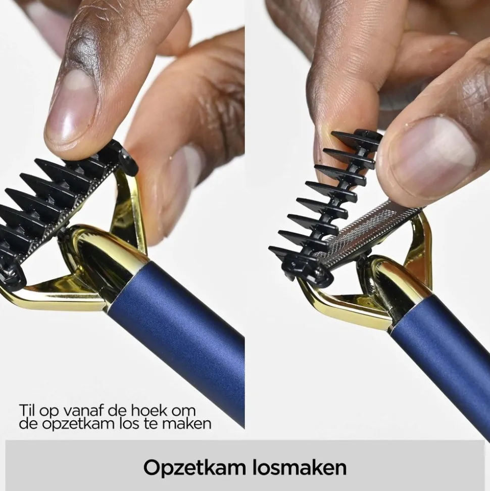 Je kunt kiezen uit verschillende lengtes voor een gladde scheerbeurt, precieze stoppels of een korte baard met opzetkammen van 1-5 mm. Het slanke metalen handvat is ontworpen voor comfort, duurzaamheid en eenvoudig trimmen.