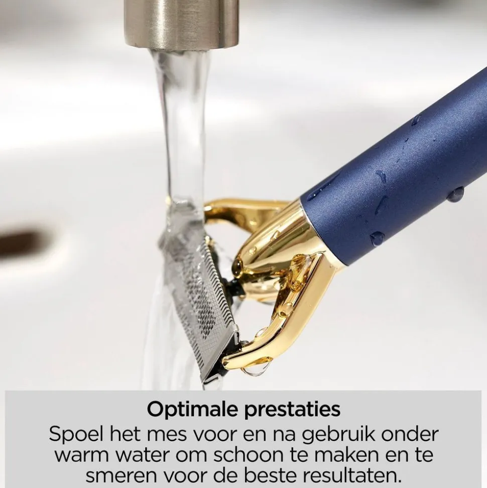 Met een geavanceerd 50ยบ flexibel Japans stalen mes volgt de X-Blade comfortabel de contouren van je gezicht voor consistente huidcontact tijdens het trimmen van je baard.