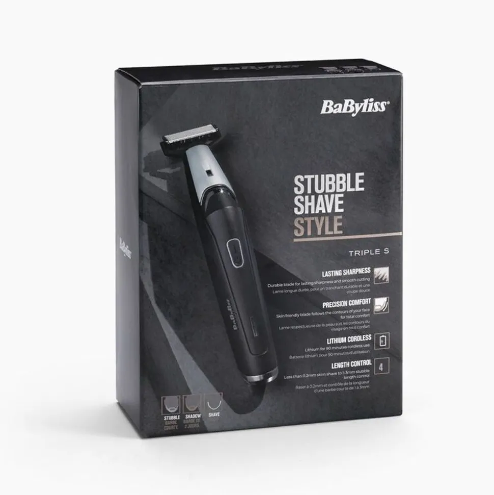De BaByliss Triple S Stubble, Shadow, Shave, Baardtrimmer biedt exceptionele snijprestaties voor korte stoppels tot wat langere stoppels, of gebruik hem zonder opzetkam voor een gladde, comfortabele scheerbeurt op 0,2mm.
