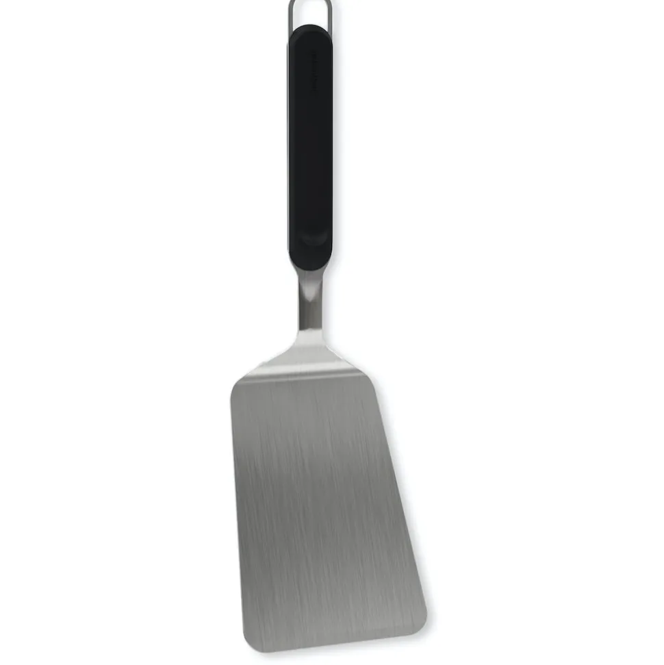 Vis spatel met ergonomisch handvat voor binnen en buiten gebruik. Vaatwasserbestendig. Dankzij de gebruiksvriendelijke lengte van de tool blijf je op een veilige afstand van het vuur. Hang deze tool op welke barbecue dan ook dankzij de universele haak.