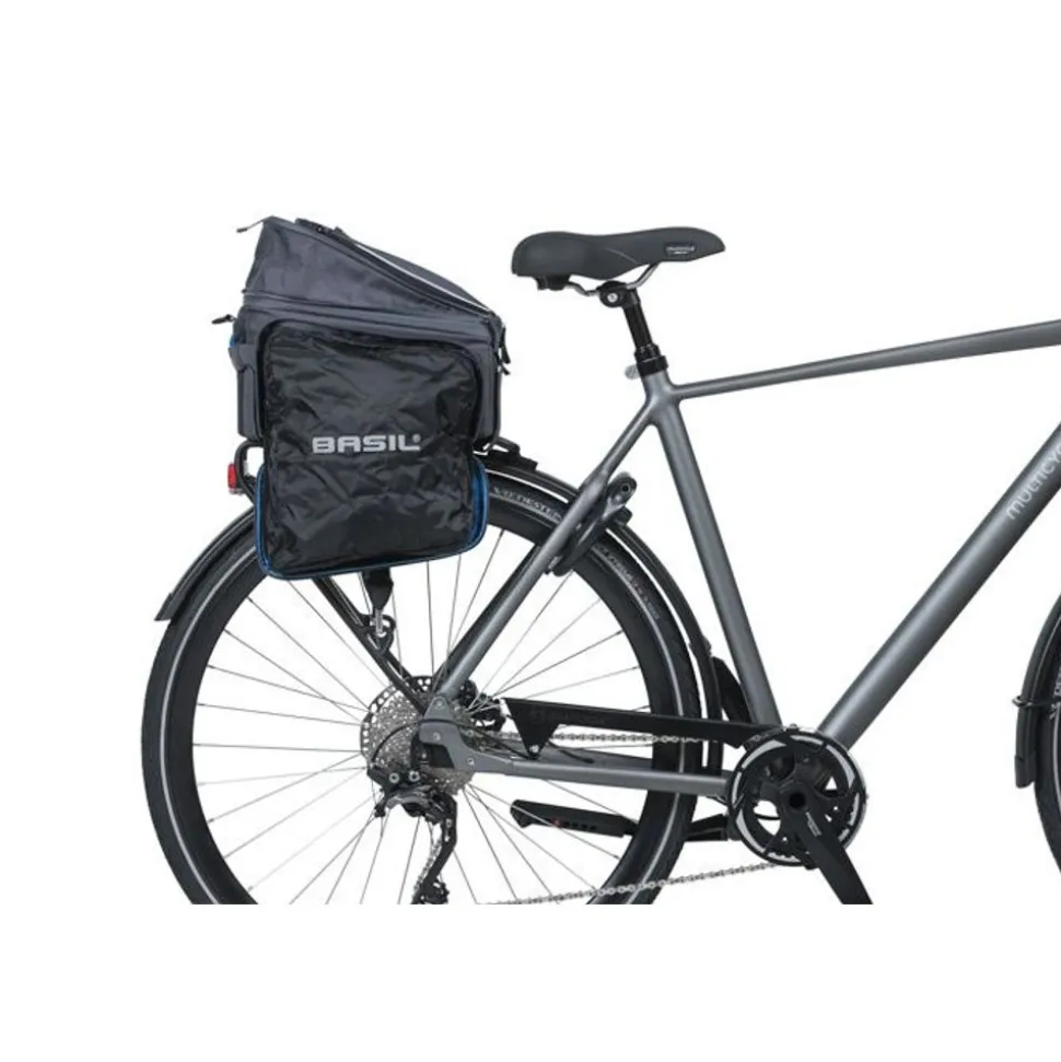 De Basil Sport Design Trunkbag is een veelzijdige bagagedragertas die geschikt is voor een reguliere fiets en een e-bike. Deze grijze bagagetas voor aan een bagagedrager is een uitkomst voor iedereen die graag lange fietsritten maakt en altijd wel wat spullen met zich meeneemt. Je kunt er bijvoorbeeld je drinkflesje in kwijt of een fietskaart. Natuurlijk biedt de tas ook optimale bescherming voor bijvoorbeeld een smartphone. Daarmee voorkom je dat deze uit je broek- of rokzak valt. Met een volume van 7 tot 15 liter is er in ieder geval voldoende ruimte voor het hoogstnoodzakelijke. De buitenkant van de tas is gemaakt van waterafstotend polyester en de kwaliteit van de fietstas wordt gewaarborgd door een stevige binnenvoering. De tas beschikt over diverse vakken en de uitbreidbare zijvakken zijn voorzien van een rits. Heel praktisch om een overzicht te bewaren van je bagage. De bagagedragertas beschikt over zowel een handgreep als een afneembare schouderriem en is dus gemakkelijk overal mee naartoe te nemen. Het reflecterende materiaal zorgt ervoor dat je altijd goed zichtbaar bent en je hebt de mogelijkheid om ledverlichting aan je bagagedrager te bevestigen. Wil je ook een kijkje nemen bij de andere fietsproducten van Basil? Bekijk het aanbod elders op de website voor nog meer keuze.