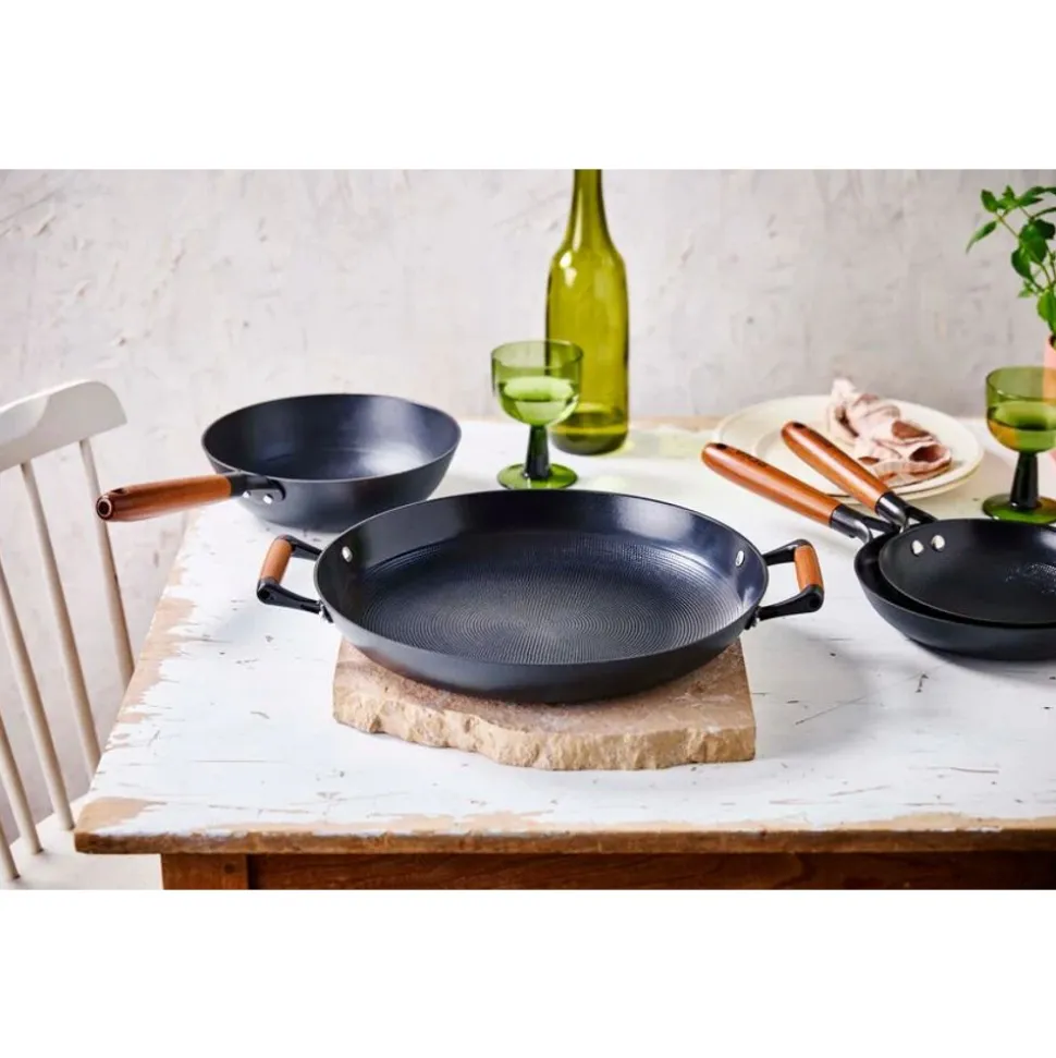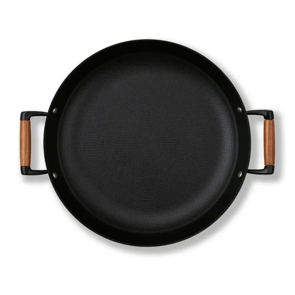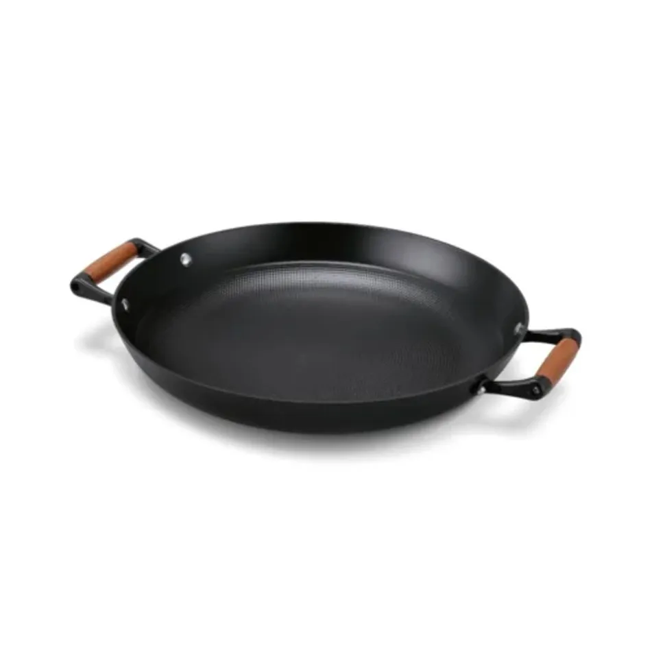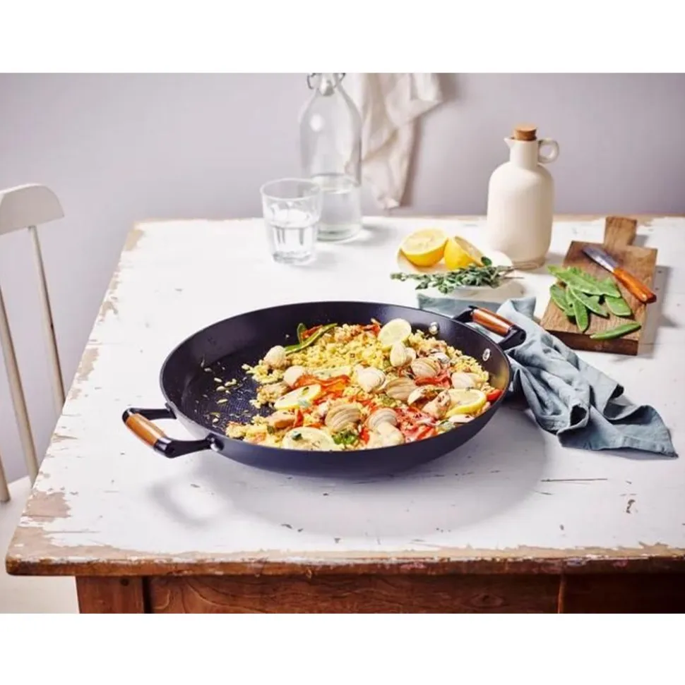 Met zijn royale diameter van 36 cm en hoge rand is de Mandala gietijzeren pan ideaal voor smaakvolle eenpansgerechten zoals paella, stoofpotjes of romige risotto. De twee stevige grepen zorgen voor extra gebruiksgemak, terwijl de keramische, anti-aanbaklaag garant staat voor zorgeloos en gezond koken. Duurzaam, stijlvol en gemaakt om te delen: zo wordt elke maaltijd een moment om samen van te genieten.