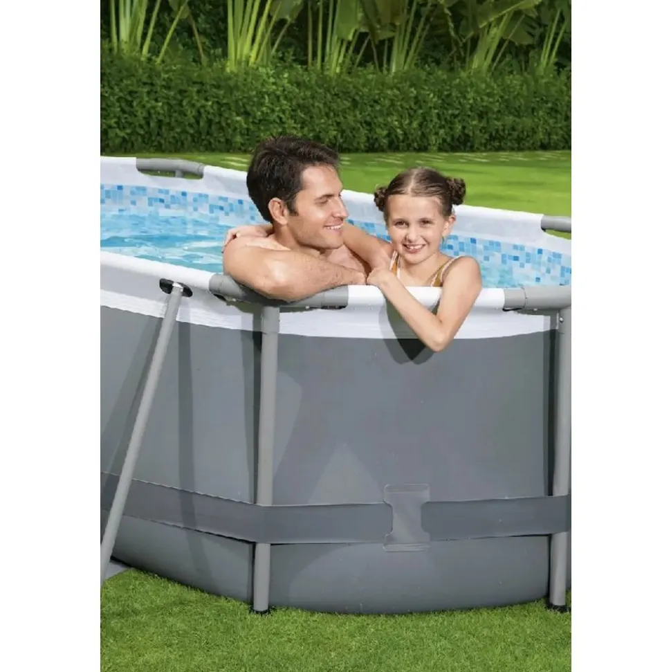 Met de Bestway Power Steel Oval – 305 x 200 x 84 cm ben je verzekerd van een stevig ovaal zwembad, waar je jarenlang zwemplezier aan beleeft. Dit zwembad wordt geleverd inclusief filterpomp en chloor dispenser. De ovale vorm maakt dit zwembad lekker compact waardoor er minder ruimte nodig is je tuin dan bij een rond zwembad. Bovendien heb je minder water nodig om het bad te vullen dan bij een rechthoekig model. Wil je meerdere jaren kunnen genieten van een frisse duik? Dan is dit frame zwembad echt iets voor jouw gezin!