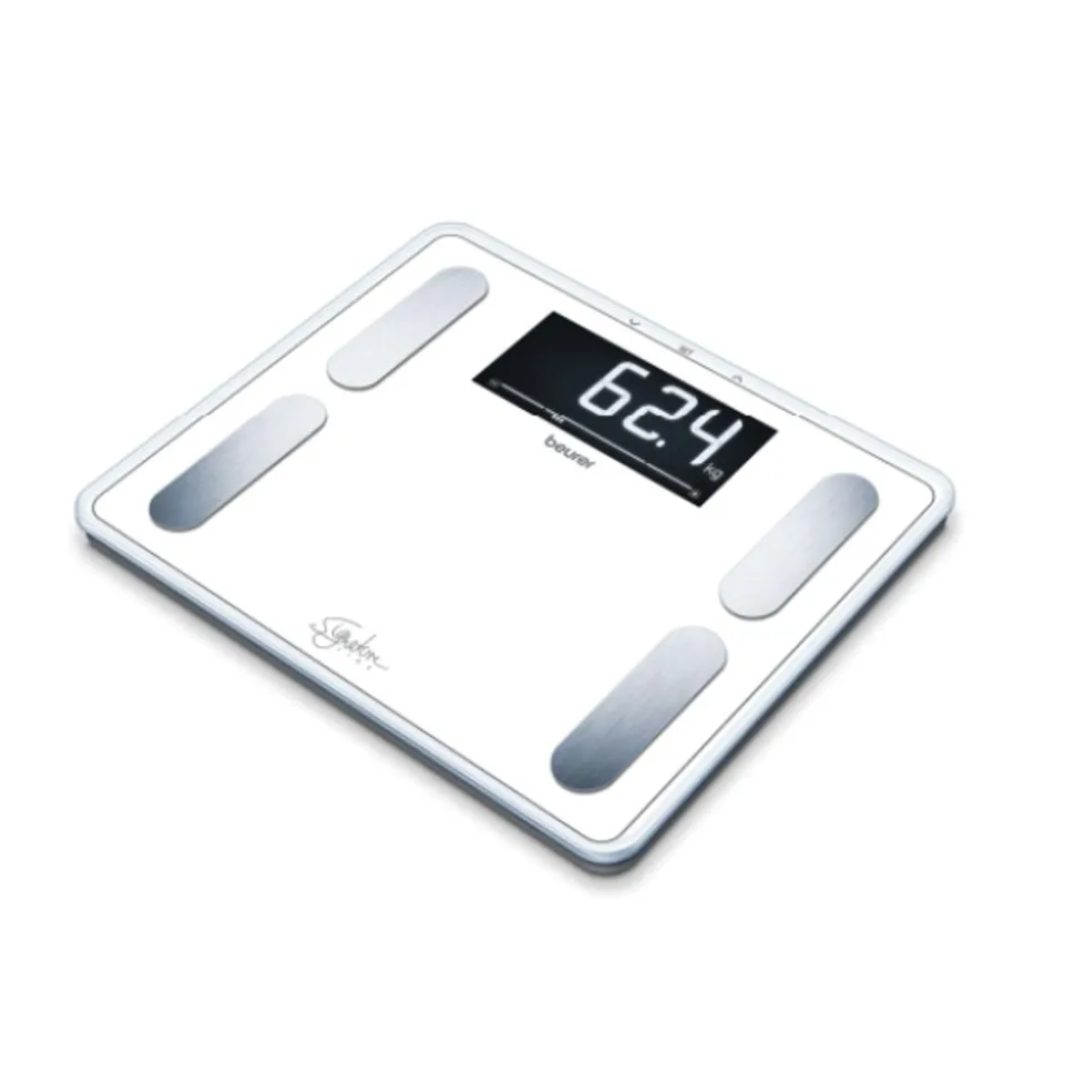- Lichaamsgewicht, vet en water, spierniveaus, botmassa, AMR/BMR caloriedisplay