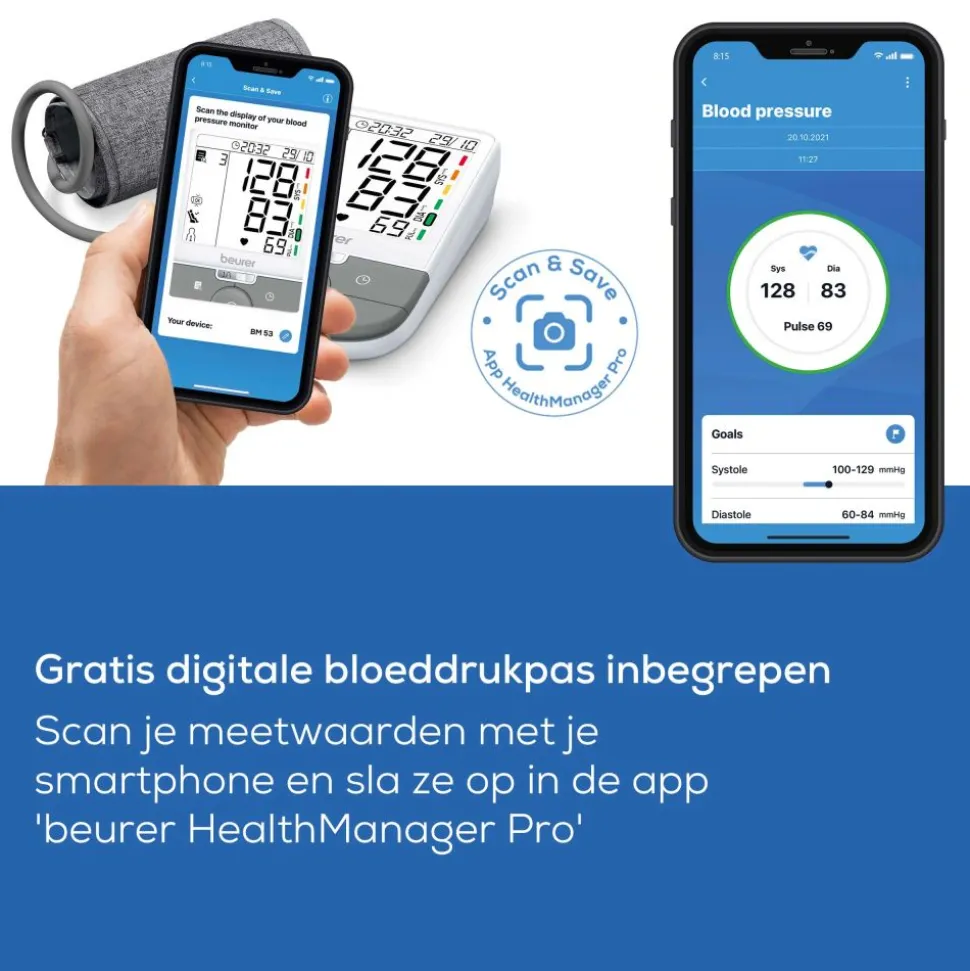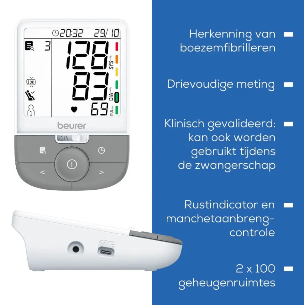 De BM 53 van Beurer is het perfecte apparaat voor de bewaking van je bloeddruk- en hartslagwaarden thuis. Met de uitgebreide hartritmestoornisherkenning herkent het apparaat boezemfibrilleren en helpt het bij de vroegtijdige herkenning van beroertes. Het grote, overzichtelijke display en de kleurindeling van de meetwaarden maken het aflezen bijzonder eenvoudig.