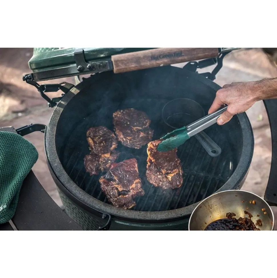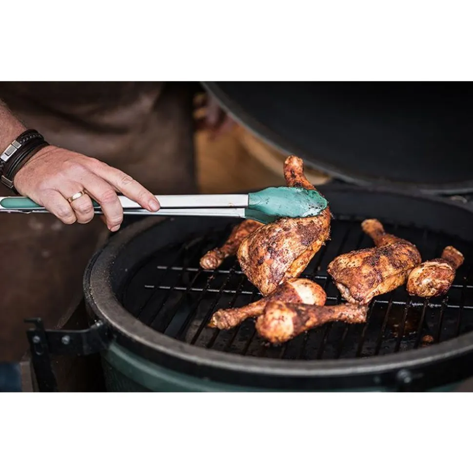 Je hebt ze allemaal in de tang met de Silicone Tipped Tongs. Deze multifunctionele roestvrijstalen tang heeft een uitstekende antislip-grip dankzij de afwerking met siliconen. Je legt, keert of haalt je gegrilde gerechten in een handomdraai op én van je EGG. Zonder te knoeien of iets te laten vallen.