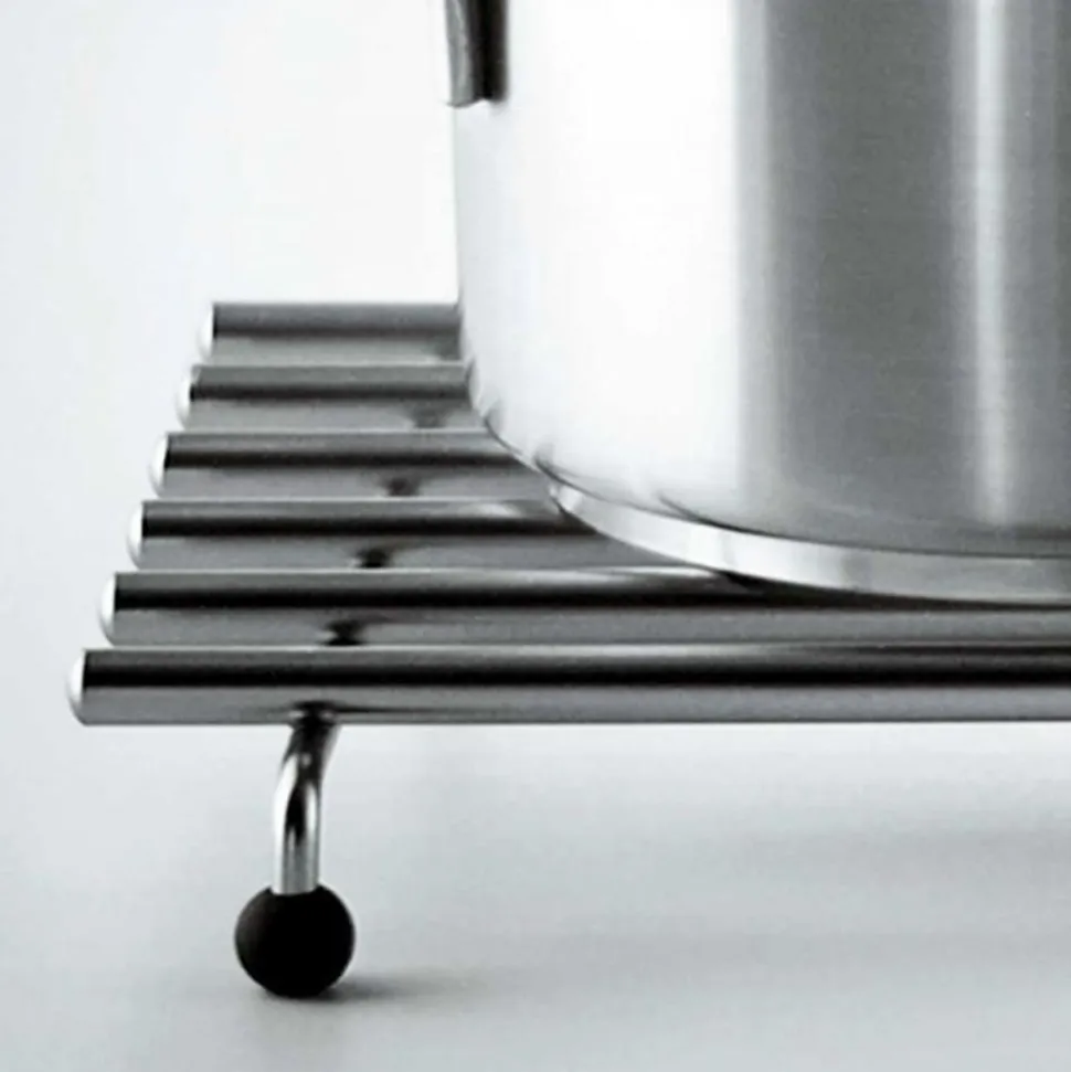 De BK onderzetters zijn gemaakt van roestvrij staal en ze vormen een solide en veilige basis voor hete pannen. Ze zijn licht van gewicht en makkelijk te plaatsen op elke ondergrond. De pootjes zijn gemaakt van kunststof met zwarte dopjes er aan vast. De dopjes zijn mooi functioneel voor bescherming van je aanrecht of tafel. De onderzetters zijn eenvoudig te reinigen in lauwwarm water met een mild afwasmiddel.