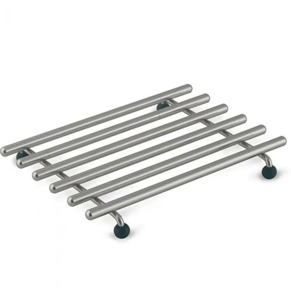 De BK onderzetters zijn gemaakt van roestvrij staal en ze vormen een solide en veilige basis voor hete pannen. Ze zijn licht van gewicht en makkelijk te plaatsen op elke ondergrond. De pootjes zijn gemaakt van kunststof met zwarte dopjes er aan vast. De dopjes zijn mooi functioneel voor bescherming van je aanrecht of tafel. De onderzetters zijn eenvoudig te reinigen in lauwwarm water met een mild afwasmiddel.