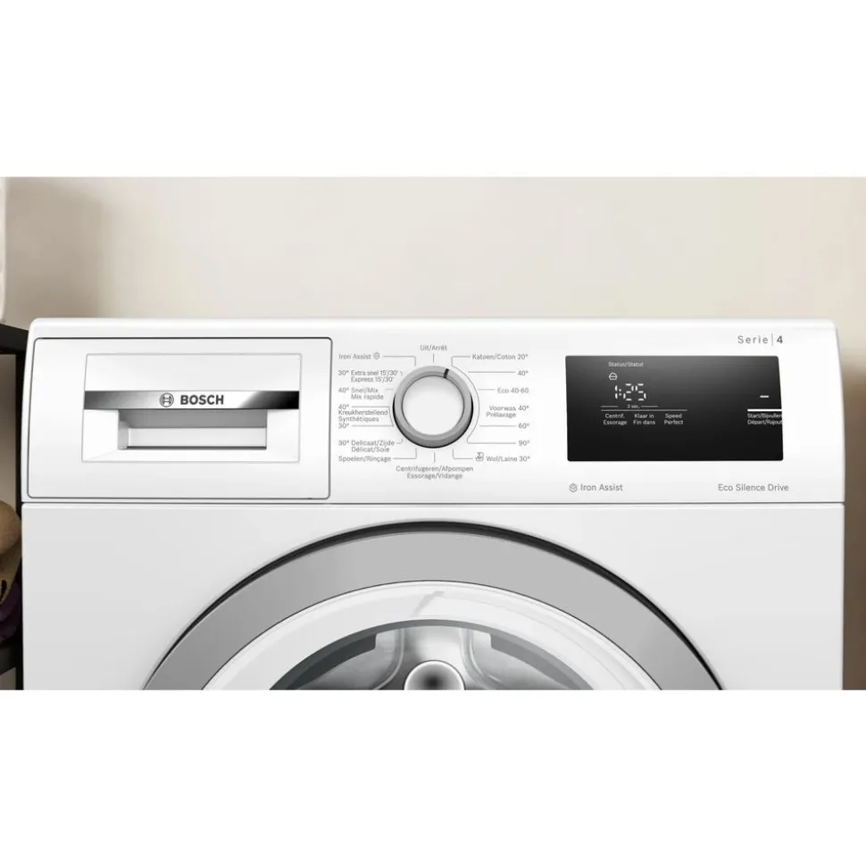 Iron Assist van Bosch voegt natuurlijke stoom toe aan het droogprogramma. De functie stoomt kleding gedurende 20 minuten en vermindert kreuken tot 50%*. Resultaat: de was is merkbaar gladder én een stuk eenvoudiger om te strijken. *Test nr. E-0323-PT-22 van het Deutschen Institute für Textil- und Faserforschung Denkendorf (DITF) van 12.07.22, met betrekking tot de kreukvermindering van katoenen kledingstukken (T-shirts en overhemden) in het Iron Assist-programma – volgens DIN EN ISO 15487 in vergelijking met niet met Iron Assist behandeld textiel.