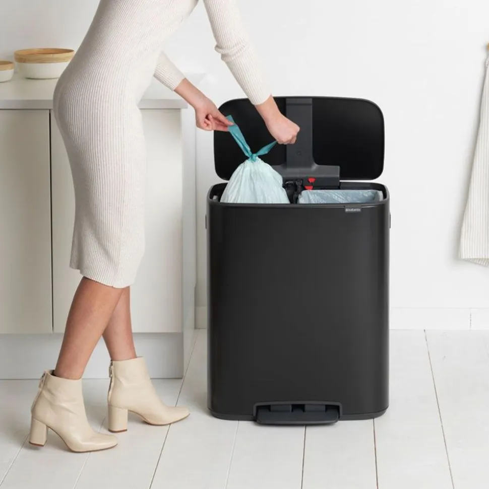 Op zoek naar een mooie oplossing om je afval te scheiden? Deze Bo pedaalemmer combineert een prachtig design met een groot talent voor afval scheiden. Dankzij twee losse binnenemmers kan Bo twee soorten afval aan. Ze past perfect tegen de muur en is dus ruimtebesparend. De anti-slip bodem beschermt de vloer en houdt de afvalemmer op zijn plaats. Dankzij de unieke soft-closure techniek sluit het deksel zacht en is de bediening superlicht. Gemaakt van de beste materialen – 10 jaar garantie.