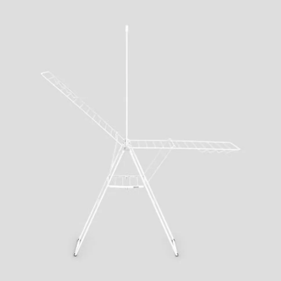 Bespaar tijd en energie door je was natuurlijk te drogen – en bespaar plaats door het met dit slimme rek te doen! Dankzij de slimme stang, 25 meter droogruimte en 8 haken voor kleerhangers heb je op dit Brabantia HangOn Droogrek alle ruimte. Alles droog? Klap ‘m eenvoudig in tot een klein pakketje en berg ‘m op. Laat die wasdroger dus maar hangen!