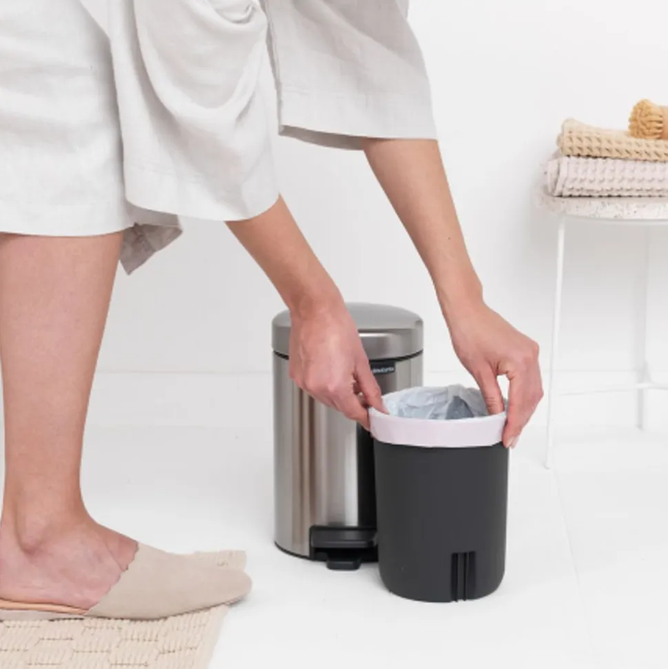 Show je stijl met deze Brabantia Pedaalemmer NewIcon 3 liter met poederige structuurlak. Tijdloos design met een geurdicht en zacht sluitend deksel. Natuurlijk is deze kleine prullenbak hygiƫnisch en makkelijk te openen, en schoon te houden. Perfect voor je badkamer, toilet of een andere kamer die wel een klein vuilnisbakje kan gebruiken.