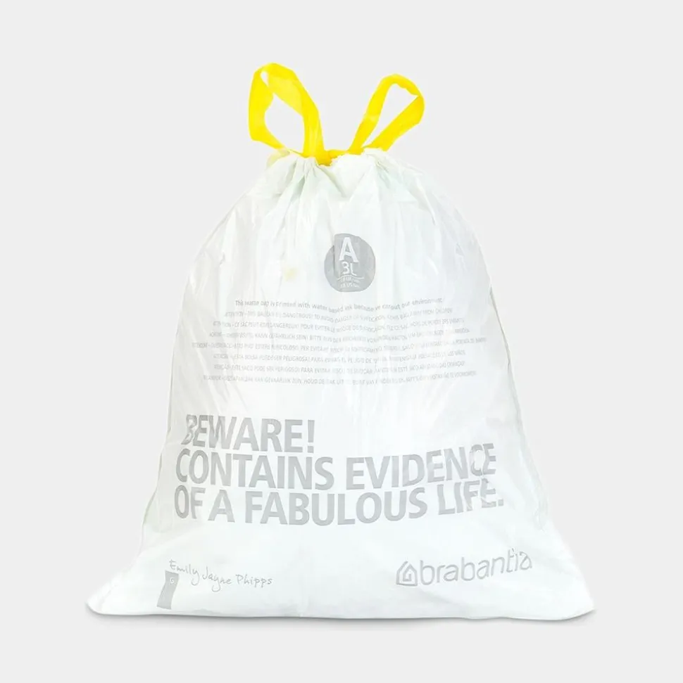 Brabantia afvalzakken zijn precies afgestemd op Brabantia pedaalemmers en afvalverzamelaars . Voor elk model is er een perfect passende afvalzak. Door de handige trekband sluiting is de volle zak makkelijk te verwijderen en dicht te knopen.
