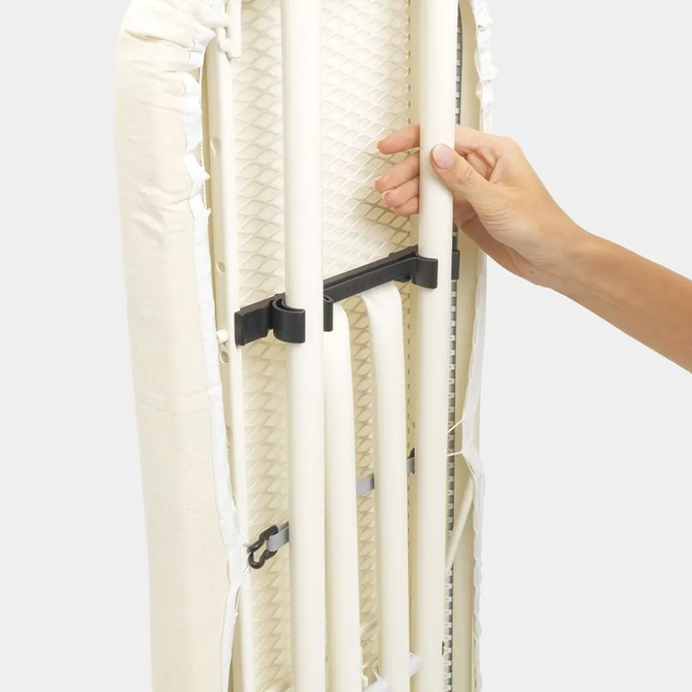 Deze strijktafel met extra stevig onderstel is voorzien van een metalen strijkerhouder, geschikt voor vrijwel alle typen strijkijzers.