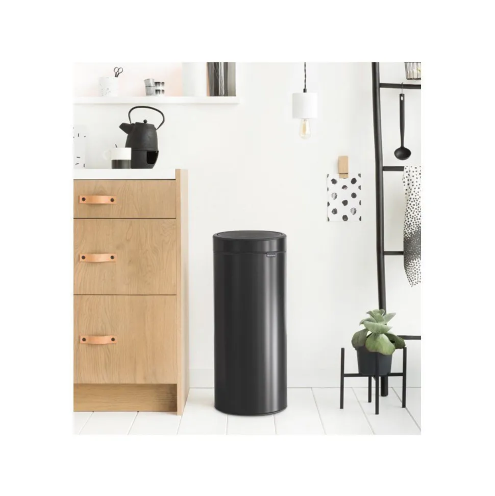 Het nieuw ontworpen deksel van de Touch Bin New opent stil en soepel bij de lichtste aanraking. Hij is echt makkelijk te openen, afvalzakken te vervangen en schoon te maken. Natuurlijk zijn er PerfectFit afvalzakken verkrijgbaar – er zit zelfs een gratis proefverpakking in je nieuwe afvalbak – en je krijgt 10 jaar garantie!