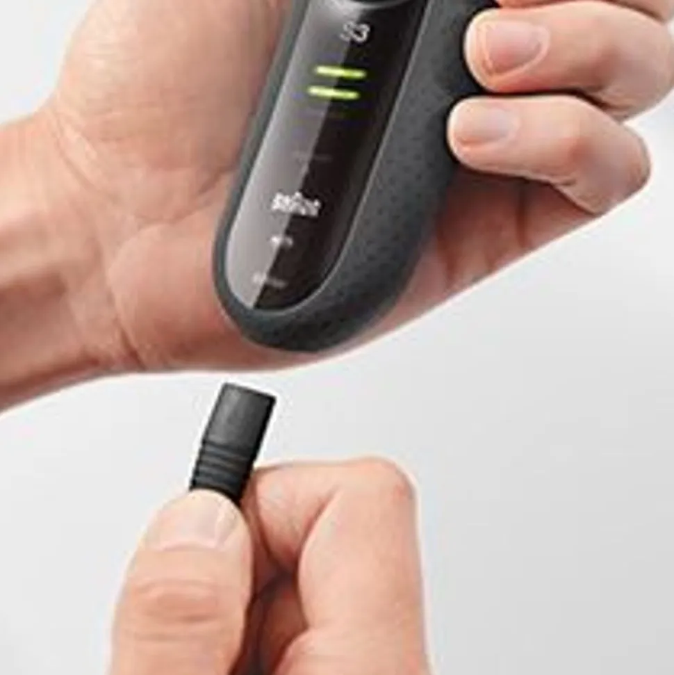 Het Braun Series 3 Shave&Style oplaadbaar elektrische scheerapparaat/-systeem is het ideale 3-in-1 verzorgingsapparaat. Kies tussen een gladde scheerbeurt en nauwkeurig baardtrimmen en -stylen door eenvoudigweg het hoofd van het apparaat te verwisselen en een van de 5 kamopzetstukken te gebruiken om de gewenste baardlengte te bereiken.