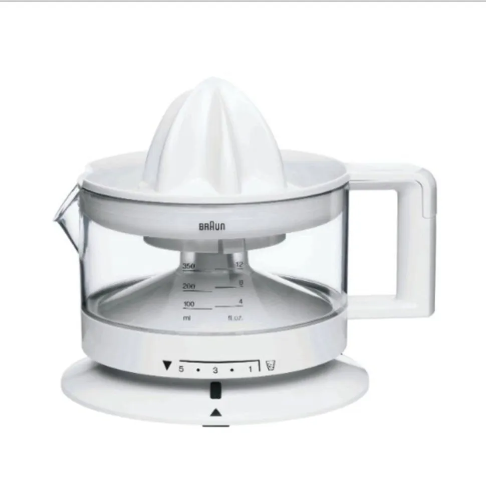 De Braun citruspers CJ 3000 is een zeer gebruiksvriendelijke citruspers voorzien van een handig 350ml sapreservoir met een duidelijke maatverdeling. Met 20W vermogen perst u gemakkelijk vruchten uit. Door middel van de automatische links- en rechtsdraaiende perskegel haalt u de optimale hoeveelheid sap uit uw vrucht. Na gebruik plaatst u de losse onderdelen van de citruspers gemakkelijk in de vaatwasser. Daarna bergt u de compacte CJ 3000 ook zó weer op in uw keukenkastje.