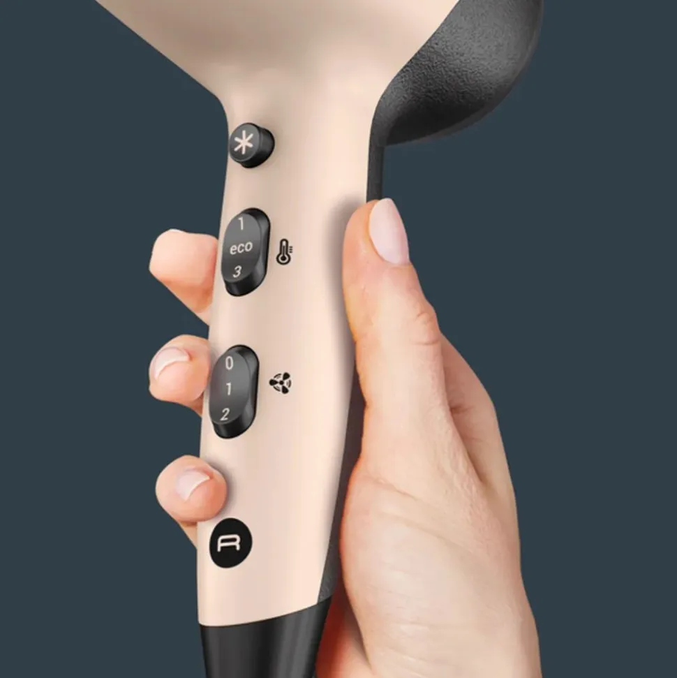 • 2 snelheden en 3 temperatuurstanden + koude-luchtknop