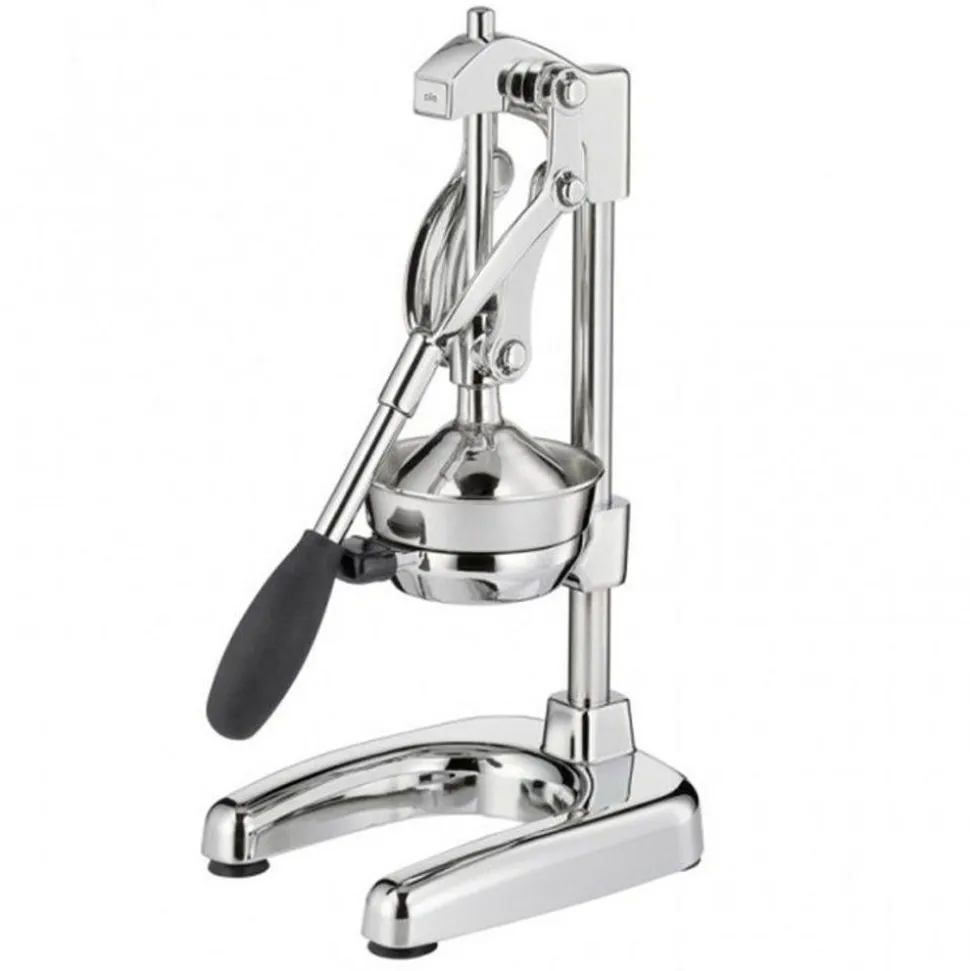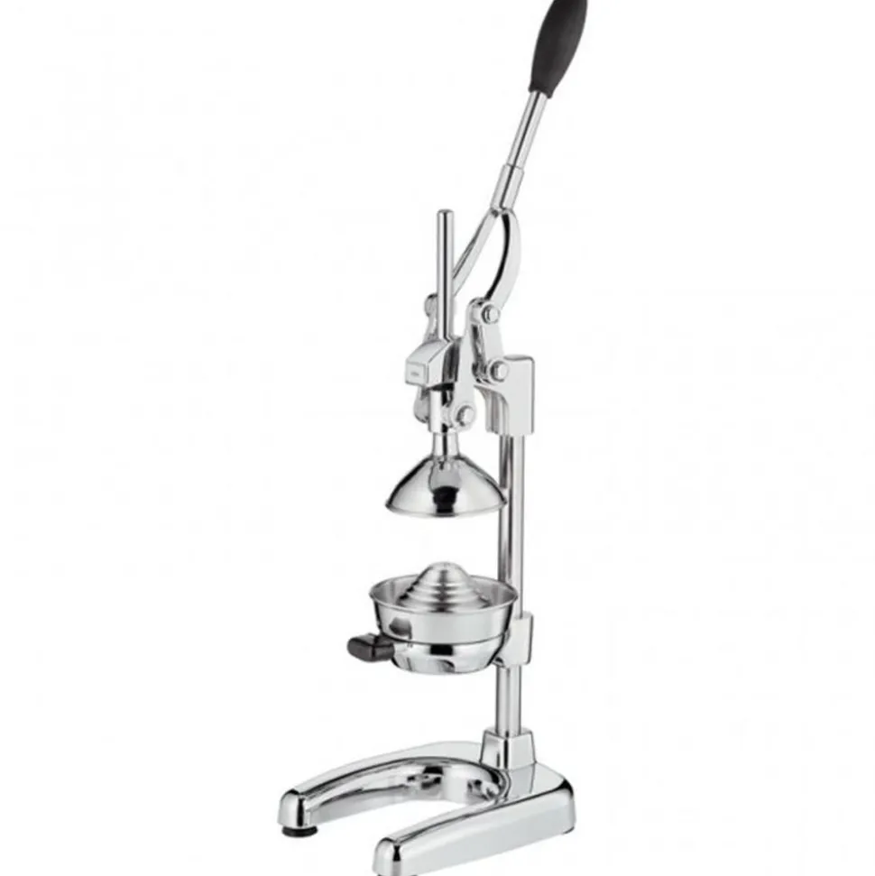 De Cilio Amalfi citruspers is vervaardigd van glanzend gepolijst metaal en is met de hendel omlaag 43 cm hoog. Dankzij de hefboom van de pers kunt u met relatief weinig kracht, veel druk uitoefenen op de vrucht en daarmee een helder sap persen.