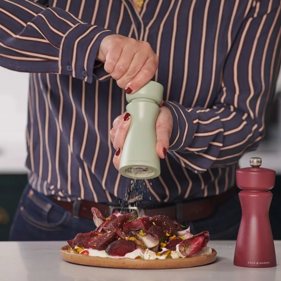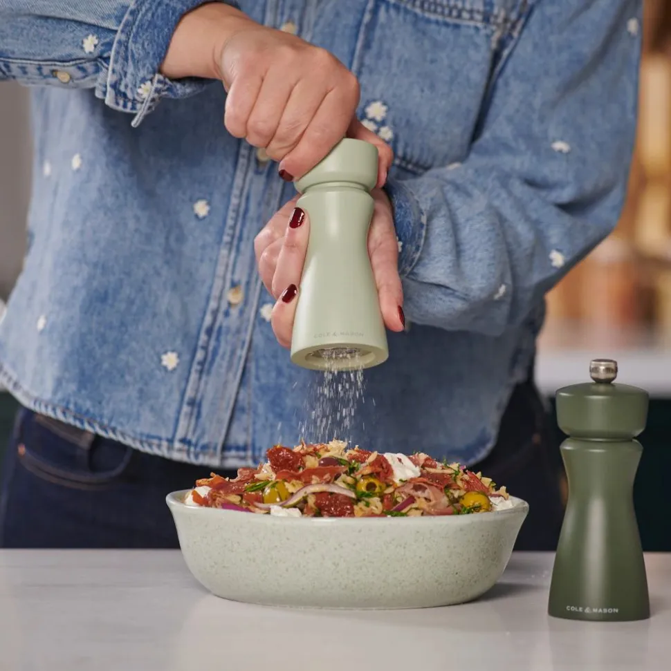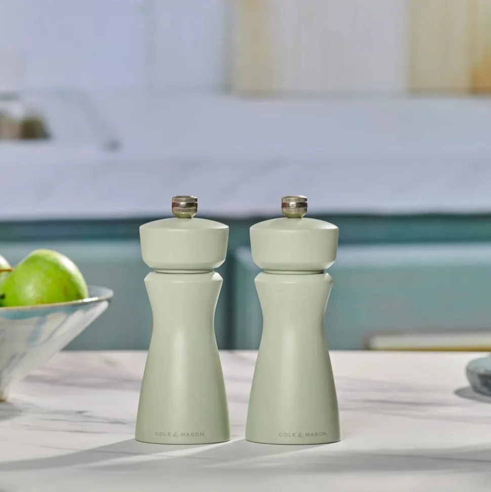Voeg aardse elegantie toe aan uw tafel met de Kenton Mill in Sage Green-afwerking. Deze molen wordt als losse molen verkocht, is aanpasbaar, navulbaar en is gemaakt om lang mee te gaan.