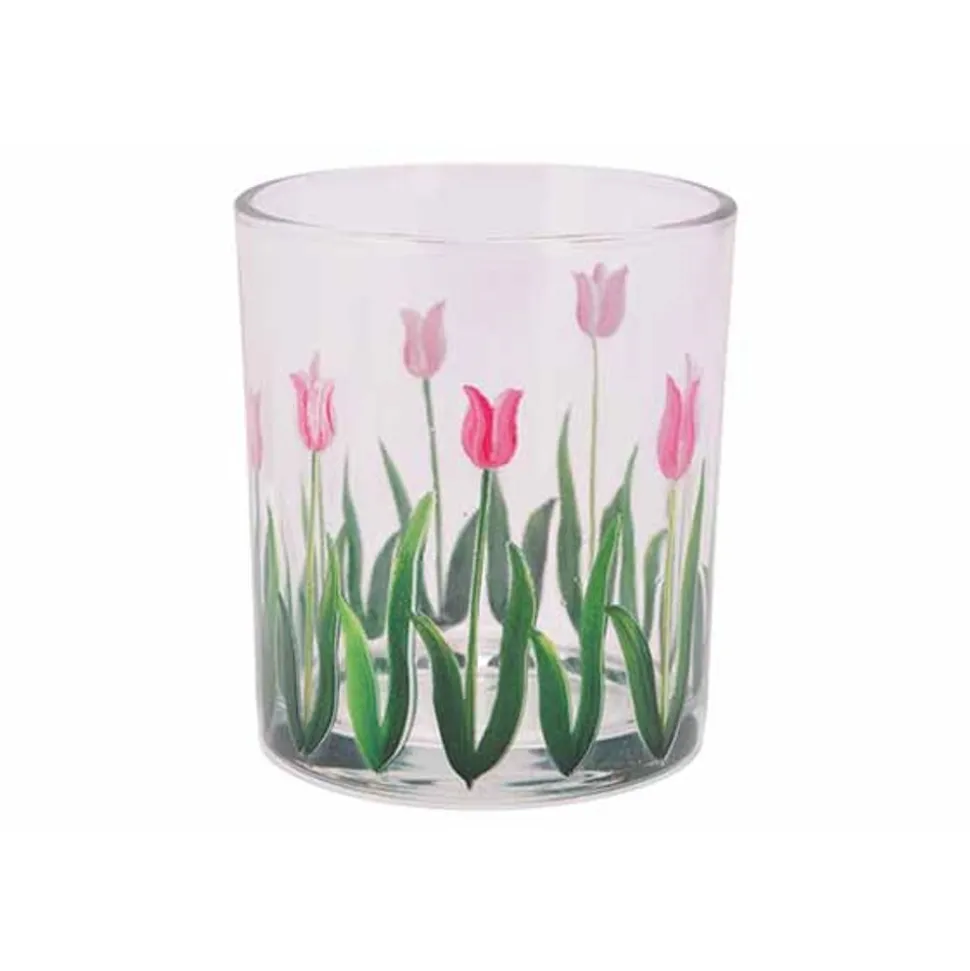 Cosy @ Home Theelichthouder Pink Tulips Transparant 9x9xh10cm Glas