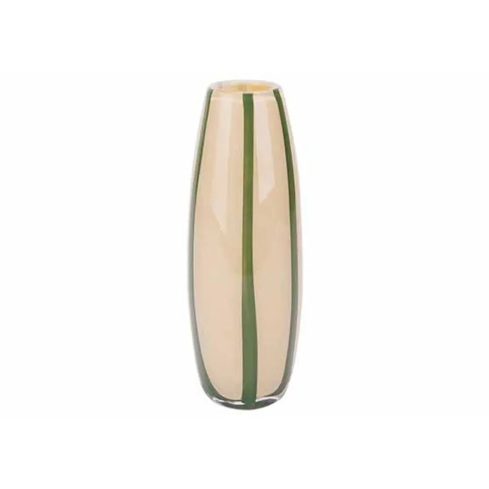 Cosy @ Home Vaas Green Stripe Creme 11x11xh30cm Glas