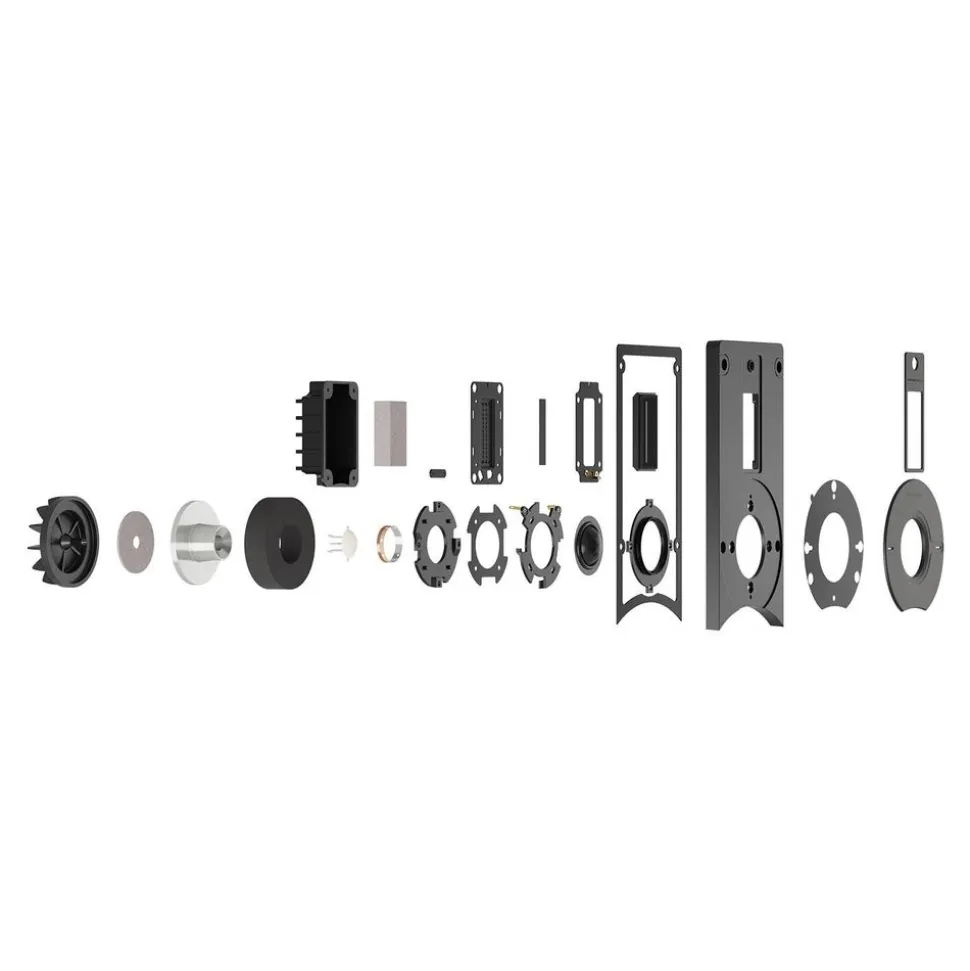 De behuizing van de vloermodellen is aan de binnenkant opgedeeld in afzonderlijke kamers, zodat er geen drukverschillen ontstaan tussen de speakers in dezelfde behuizing. En dat voorkomt staande golven in de behuizing zelf. Zo kunnen de eenheden afzonderlijk worden afgesteld, zonder dat ze elkaar beïnvloeden. Net als bij de EPIKORE heeft elke kamer zijn eigen, gloednieuwe ‘Continuous Flare’-reflexpoort die geen rechte lijnen heeft. Dit optimaliseert de luchtstroom, maakt de poort lineairder en elimineert resonanties en poortruis. Kortom, DALI heeft alles op alles gezet voor een zo strak mogelijke basweergave.
