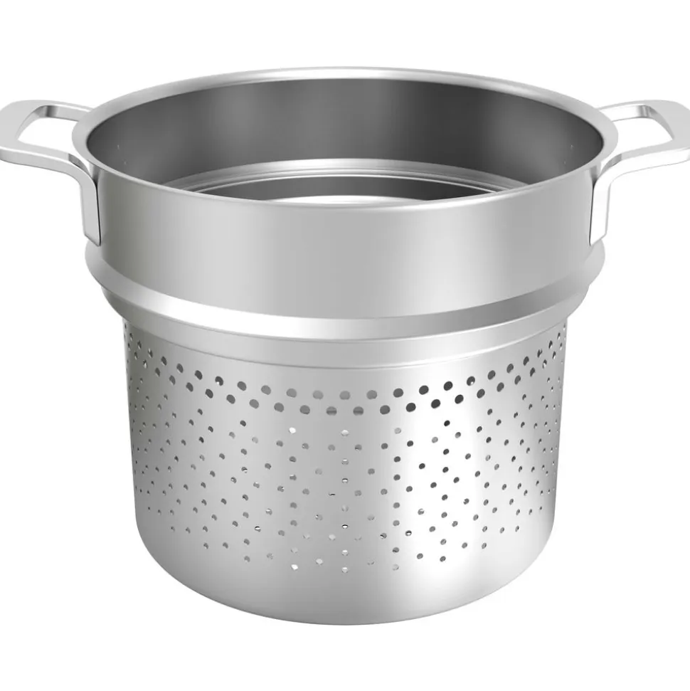 Binnen de Italiaanse pastakeuken blijf je eindeloos variëren. Puur en eenvoudig, met een paar verse ingrediënten en een kwalitatieve extra vierge olijfolie. Of chic en verfijnd, met truffel of venusschelpjes bijvoorbeeld. Deze degelijke Intense 5 pasta-inzet is een onmisbare hulp. Tagliatelle of papardelle al dente? Tortellini of gnocchi perfect gaar? Til deze kookmand – tevens vergiet – eenvoudig uit de pot. Gewoon even laten uitlekken, klaar. Geen gevaar voor kokend water over je vingers, geen pasta die ontsnapt. Bovendien kan je het kookvocht hergebruiken voor een extra portie. Dat bespaart tijd, water en energie. En maakt deze tool ook heel geschikt voor het blancheren van groenten. Onze robuuste pasta-inzet uit de Intense 5 reeks past in elke Demeyere soeppot van 24 cm doorsnede en is gemaakt van roestvrij staal. De speciale Silvinox® technologie voorkomt verkleuring, behoudt de glans en zorgt ervoor dat je je pasta-inzet telkens moeiteloos schoon krijgt. Bovendien kan de pasta-inzet probleemloos de vaatwasser in. Goed voor jarenlang plezier in la cucina. Bravo!