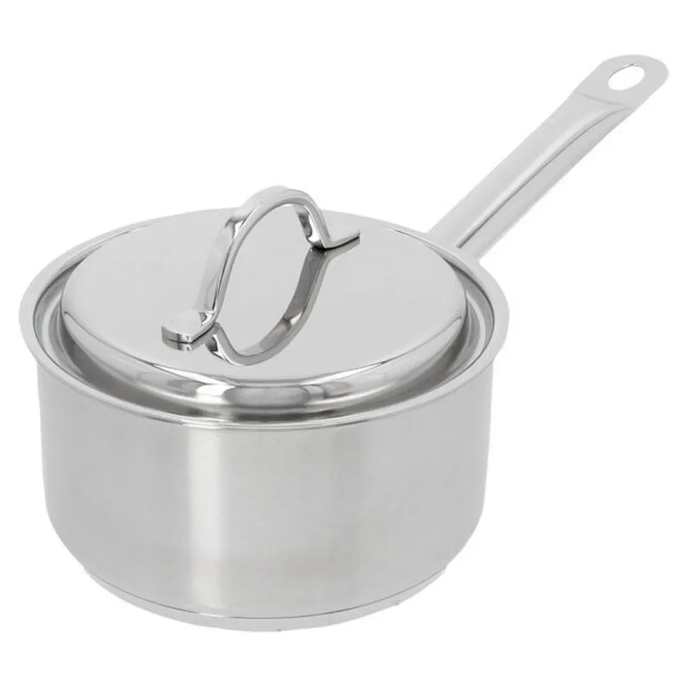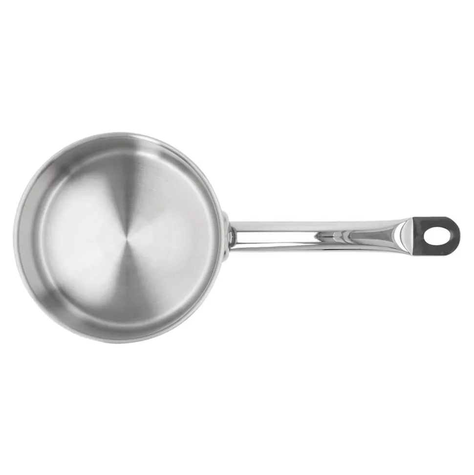 Een stevige steelpan is onmisbaar in je keuken. Voor allerlei toepassingen maar zeker voor het bereiden van sauzen. Dit degelijke exemplaar met een doorsnede van 16 cm uit onze Resto 3 serie verdeelt de warmte gelijkmatig in de bodem. Zo kook je snel en efficiƫnt bouillons en sauzen in. Ook ideaal voor het smelten van boter en om eieren of vis te pocheren. Dit alles bereiden kan op eender welke kookplaat, ook inductie. Deze kwalitatieve steelpan kan zelfs probleemloos in de oven, als je een saus warm wil houden tot de rest van de maaltijd klaar is. Afwassen gaat moeiteloos. De stevige greep is zo gelast dat er geen vuil tussen kan. Dankzij het oog in de steel kan je het Resto 3 pannetje binnen handbereik hangen, bij het fornuis of boven het aanrecht. Het deksel past perfect. Hierdoor gaat er geen warmte of stoom verloren en verspil je geen energie. Bovendien kan je hetzelfde deksel gebruiken op elke Demeyere pot met dezelfde diameter.