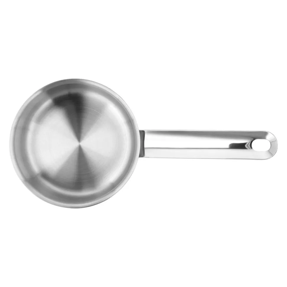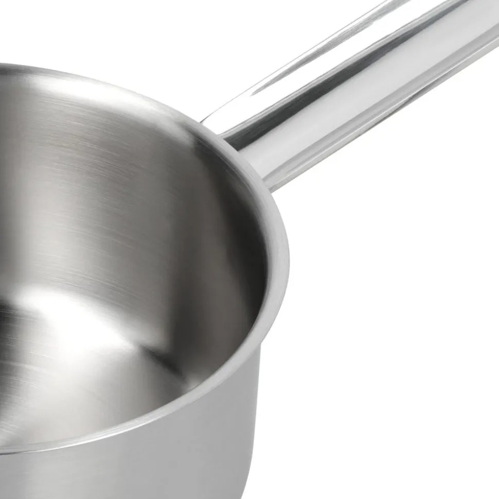 Dit is hét ideale hulpmiddel in de keuken van een hobbykok. Doe het jezelf zeker maar cadeau, je krijgt er gegarandeerd geen spijt van. Met zijn 12 cm doorsnede is het ideaal voor het bereiden van individuele porties, het eenvoudig à la minute afwerken van sauzen en het opwarmen van een kleine hoeveelheid. Ook perfect voor het elegant serveren aan tafel. Dit blinkend gepolijste sauspannetje is gemaakt van roestvrij staal. Het heeft een 3-lagenbodem van 3,5 mm dik waardoor je het zowel op alle types fornuizen, inclusief inductie, als in de oven kan gebruiken, zowel om te koken als om warm te houden. Dankzij de handige schenkrand kan je de saus rechtstreeks dresseren over je gerecht, zonder morsen. Een kleine maar hele fijne aanwinst voor jouw keuken.