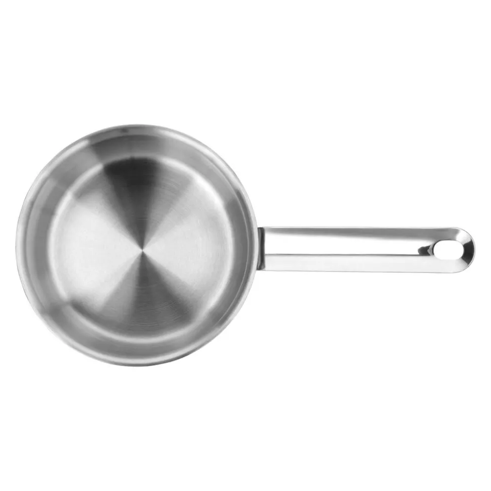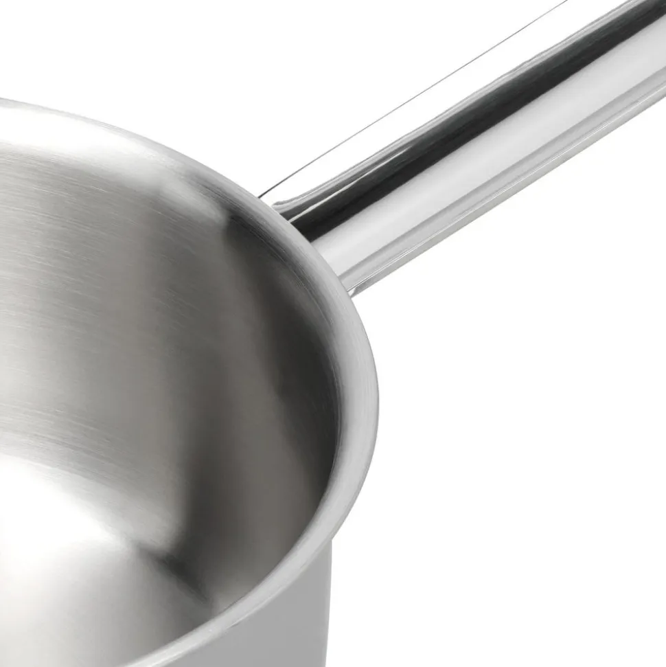 Dit is hét ideale hulpmiddel in de keuken van een hobbykok. Doe het jezelf zeker maar cadeau, je krijgt er gegarandeerd geen spijt van. Met zijn 14 cm doorsnede is het ideaal voor het bereiden van individuele porties, het eenvoudig à la minute afwerken van sauzen en het opwarmen van een kleine hoeveelheid. Ook perfect voor het elegant serveren aan tafel. Dit blinkend gepolijste sauspannetje is gemaakt van roestvrij staal. Het heeft een 3-lagenbodem van 3,5 mm dik waardoor je het zowel op alle types fornuizen, inclusief inductie, als in de oven kan gebruiken, zowel om te koken als om warm te houden. Dankzij de handige schenkrand kan je de saus rechtstreeks dresseren over je gerecht, zonder morsen. Een kleine maar hele fijne aanwinst voor jouw keuken.