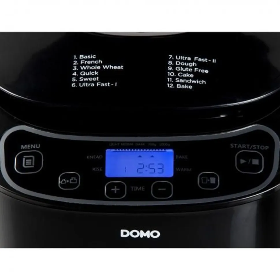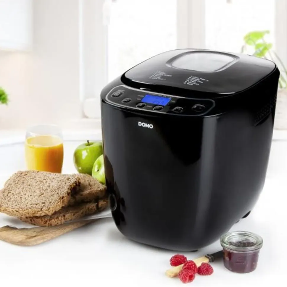 De DOMO broodbakmachine B3973 is ideaal voor het bakken van brood van 700 g of 1000 g. Het toestel beschikt over 12 programma’s waaronder een glutenvrij programma. Daarnaast kan je er bijvoorbeeld ook het deeg voor een pizza of sandwiches in maken. Hou je ervan om wakker te worden met de geur van versgebakken brood? Gebruik dan de functie ‘uitgesteld programmeren’ waarmee je zelf kiest wanneer je brood klaar is. Dit kan je tot wel 13 uur instellen. Bovendien bepaal je met de korstbruiningscontrole zelf hoe bruin je brood gebakken wordt. Het apparaat beschikt ook over een warmhoudfunctie waardoor je het brood na afloop van het programma nog een uur kan laten rusten.