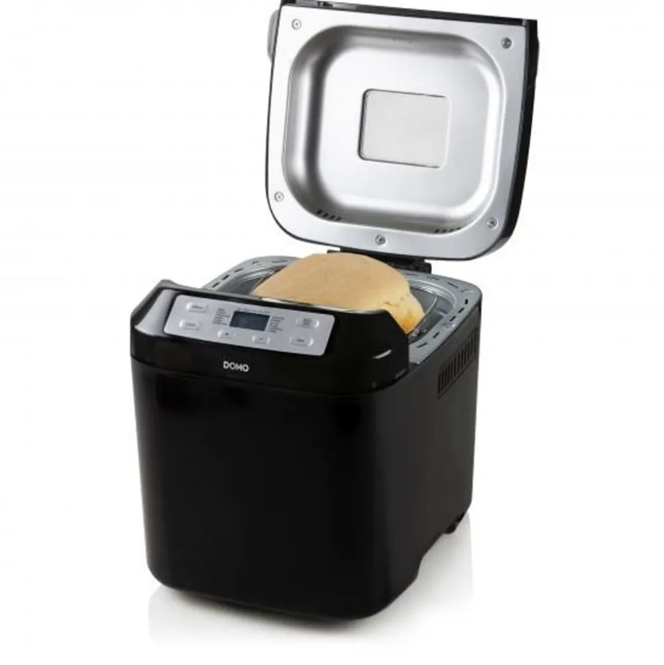 Mmm, heerlijk zo een zelfgemaakt brood. Wil je ook proeven? Haal dan broodbakmachine B3974 van DOMO in huis en geniet mee van een smaakvol brood. Ga aan de slag en kies uit één van de 12 verschillende bakprogramma’s. Een leek in de wondere wereld van het broodbakken? Geen nood, het meegeleverde receptenboekje helpt je op weg. Met dit toestel maak je een klein broodje van 750 g of een groot brood van 1000 g. ’s Avonds alle ingrediënten in de machine om te ontwaken met een versgebakken brood? Dat kan! Dankzij de timer kan je uitgesteld programmeren tot 13 uur. 12 programma’s: normaal, Frans, volkoren, snel, zoet, glutenvrij, supersnel, deeg, kneden, cake, sandwich, bakken