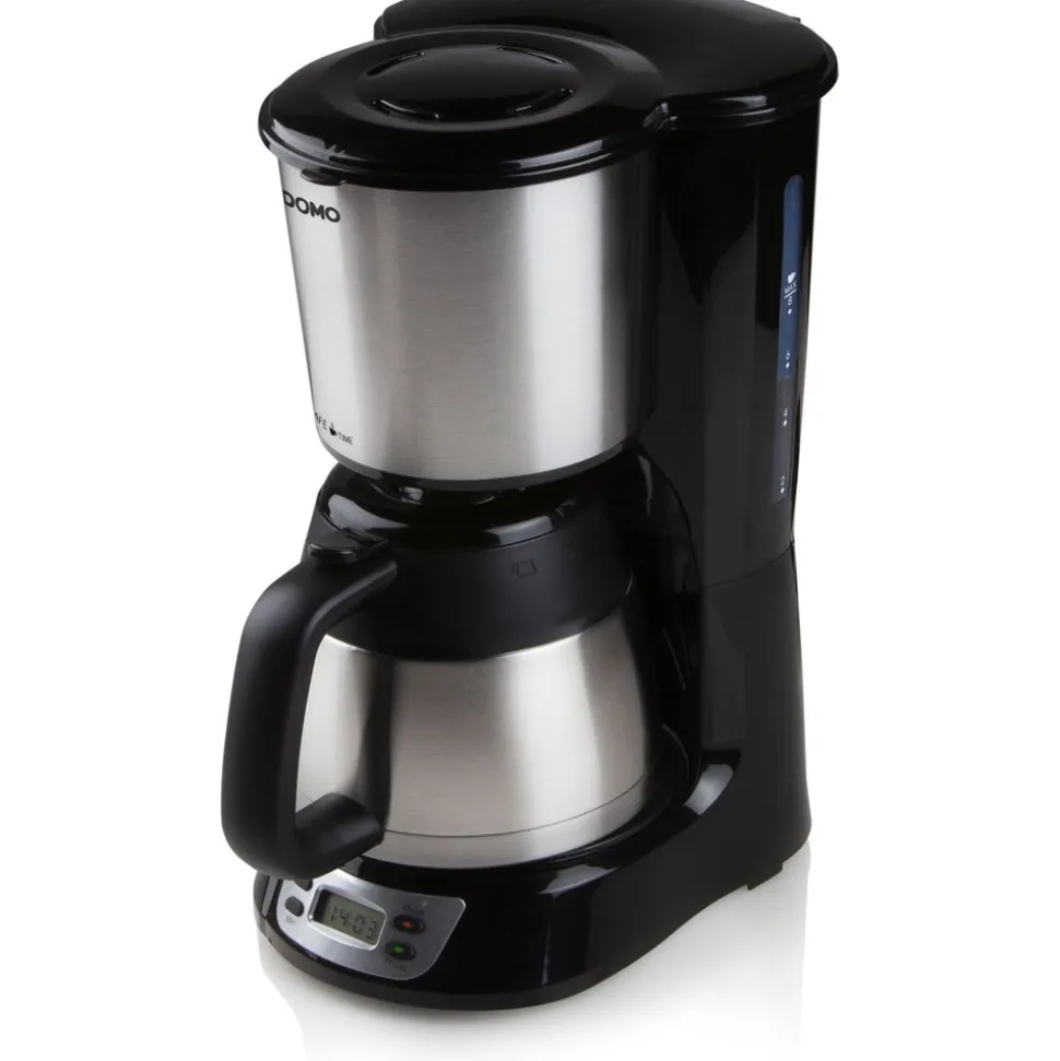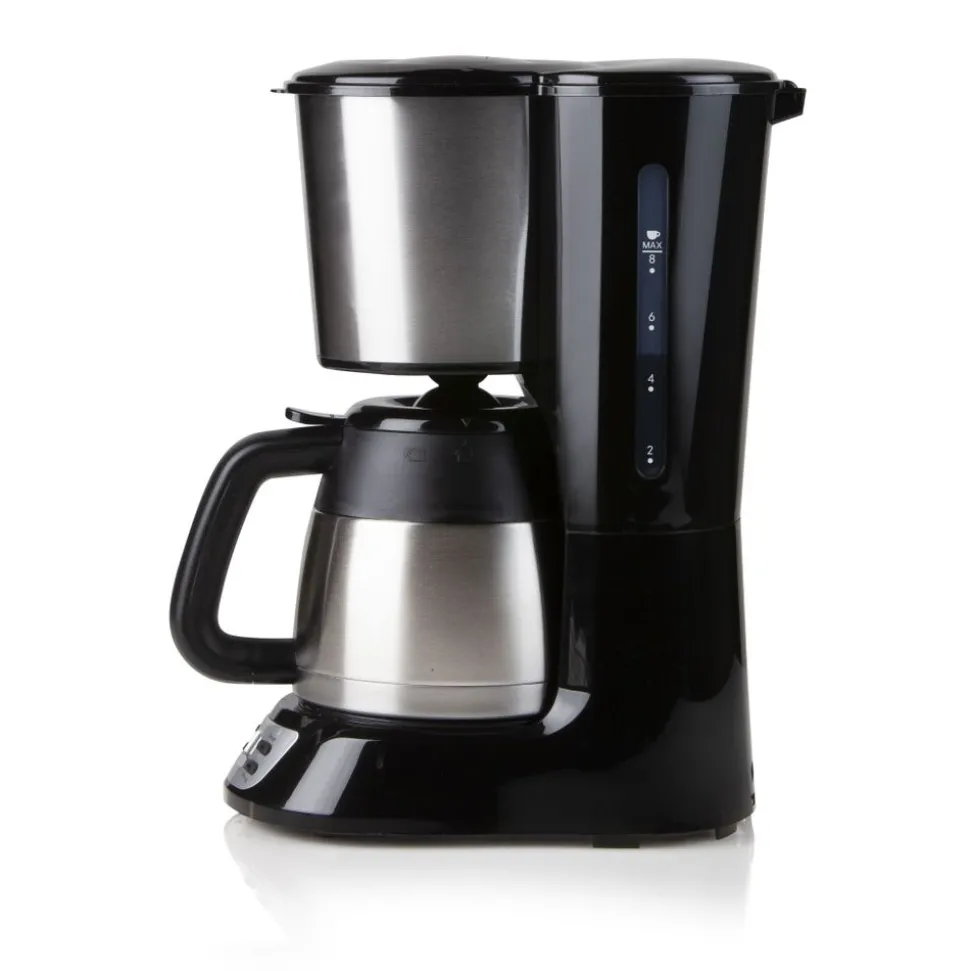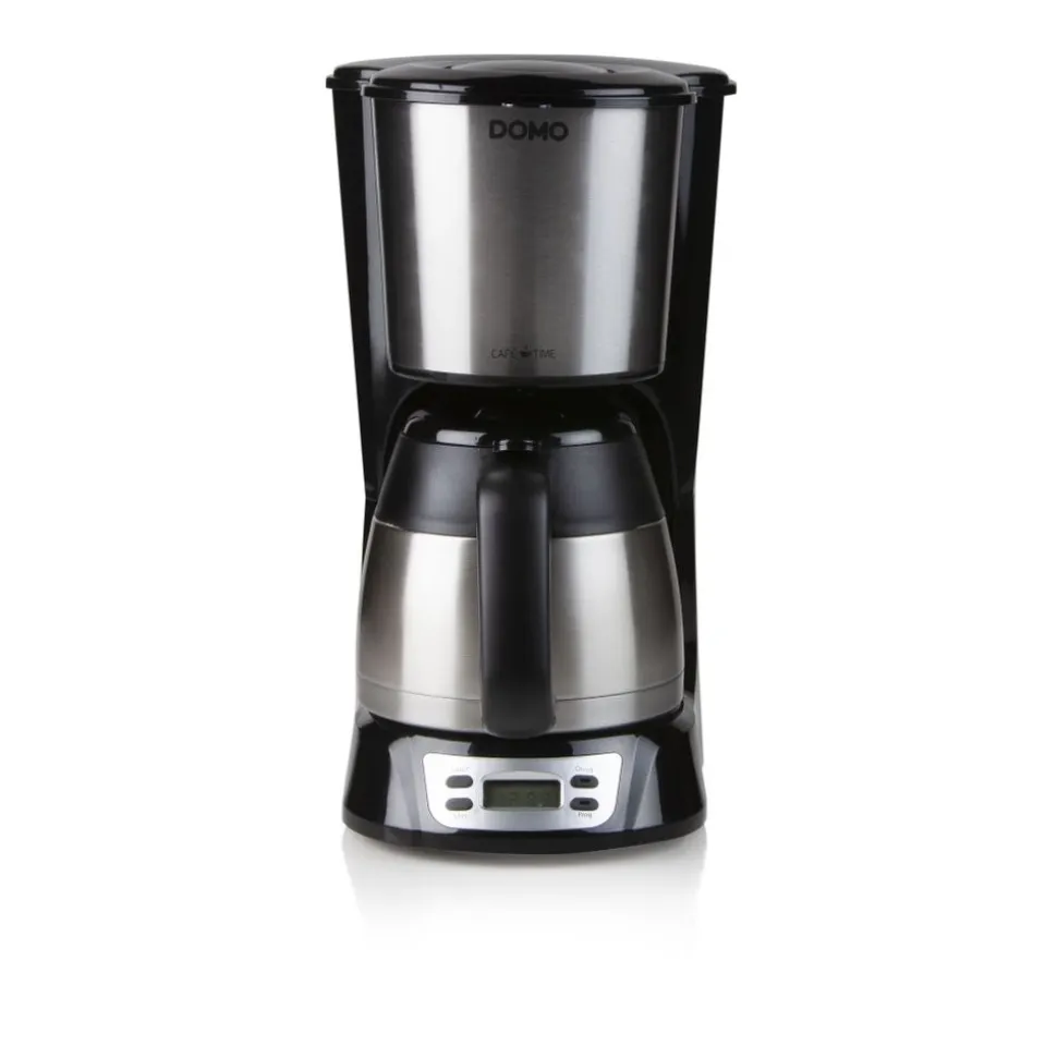 Inhoud 1 l – 8 tassen – Bedieningspaneel met lcddisplay – Timer tot 24 uur – Automatische uitschakeling – Verwijderbare filter – Druppelstop – Roestvrijstalen thermische isoleerkan die de koffie langer warm houdt – Hoogwaardige roestvrijstalen afwerking