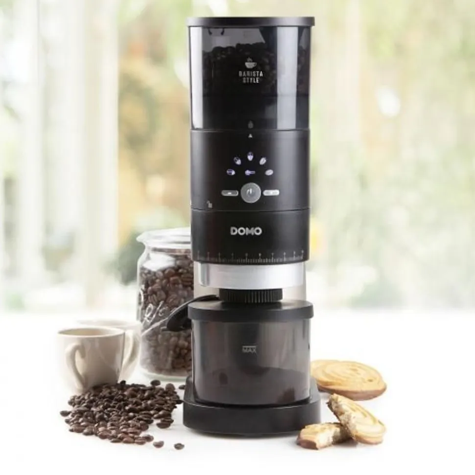 - Conisch maalwerk uit roestvrij staal om de hitte tijdens het malen te minimaliseren en de essentiële oliën in de koffiebonen te beschermen