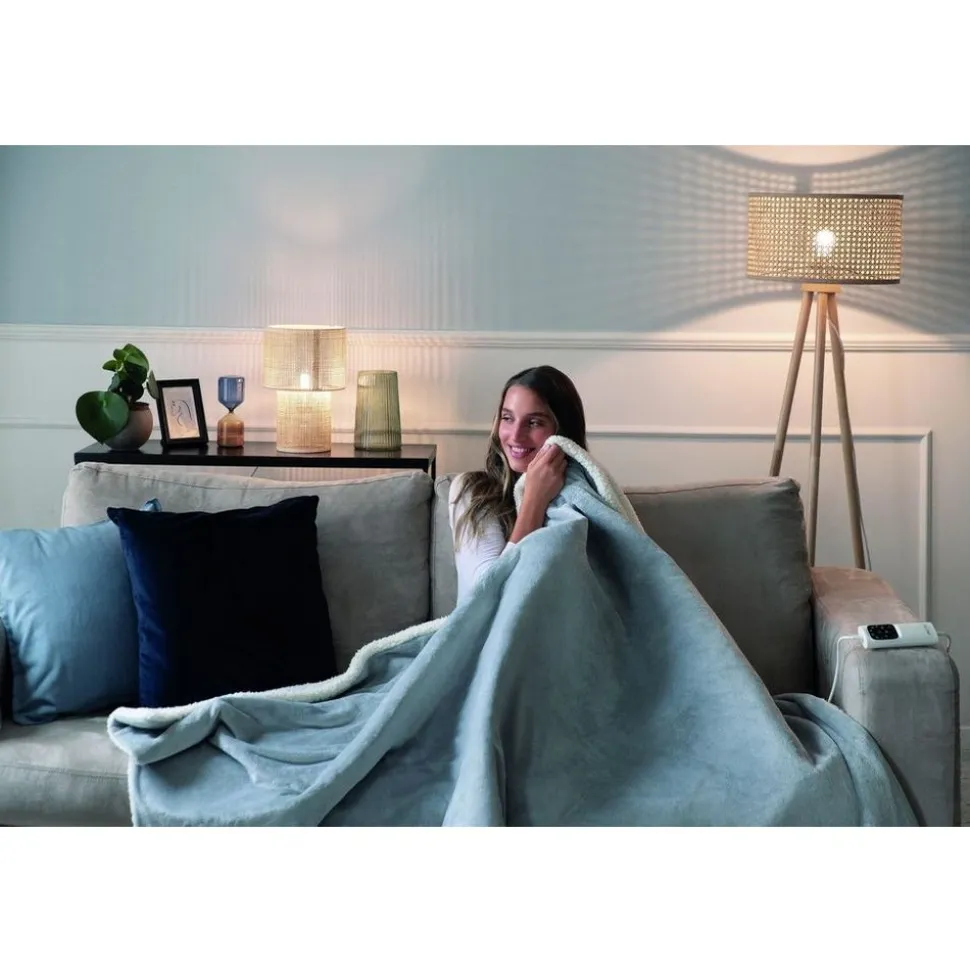 VERWARMINGSPLAID plaid Intelliheat 120×160 – 1 persoon intelliheat: past gekozen temperatuur automatisch aan 6 standen, beveiliging tegen oververhitting 1 afneembare schakelaar machinewasbaar: 100% microfleece