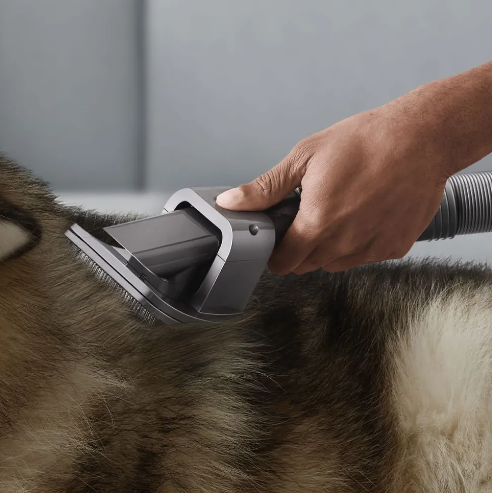 Door Dyson ontwikkeld accessoire voor het borstelen van huisdieren met halflang en lang haar. Verwijdert losse haren en huiddeeltjes terwijl u uw huisdier borstelt. Flexibele borstelharen reinigen zichzelf in een handomdraai.