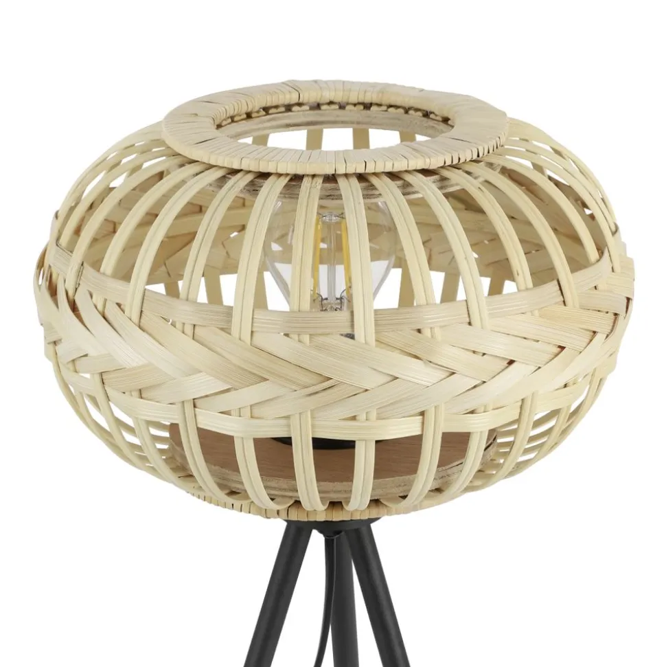 Eglo AMSFIELD 1 Tafellampen staal zwart / Hout natuur H: 410 mm | Ø 260 mm