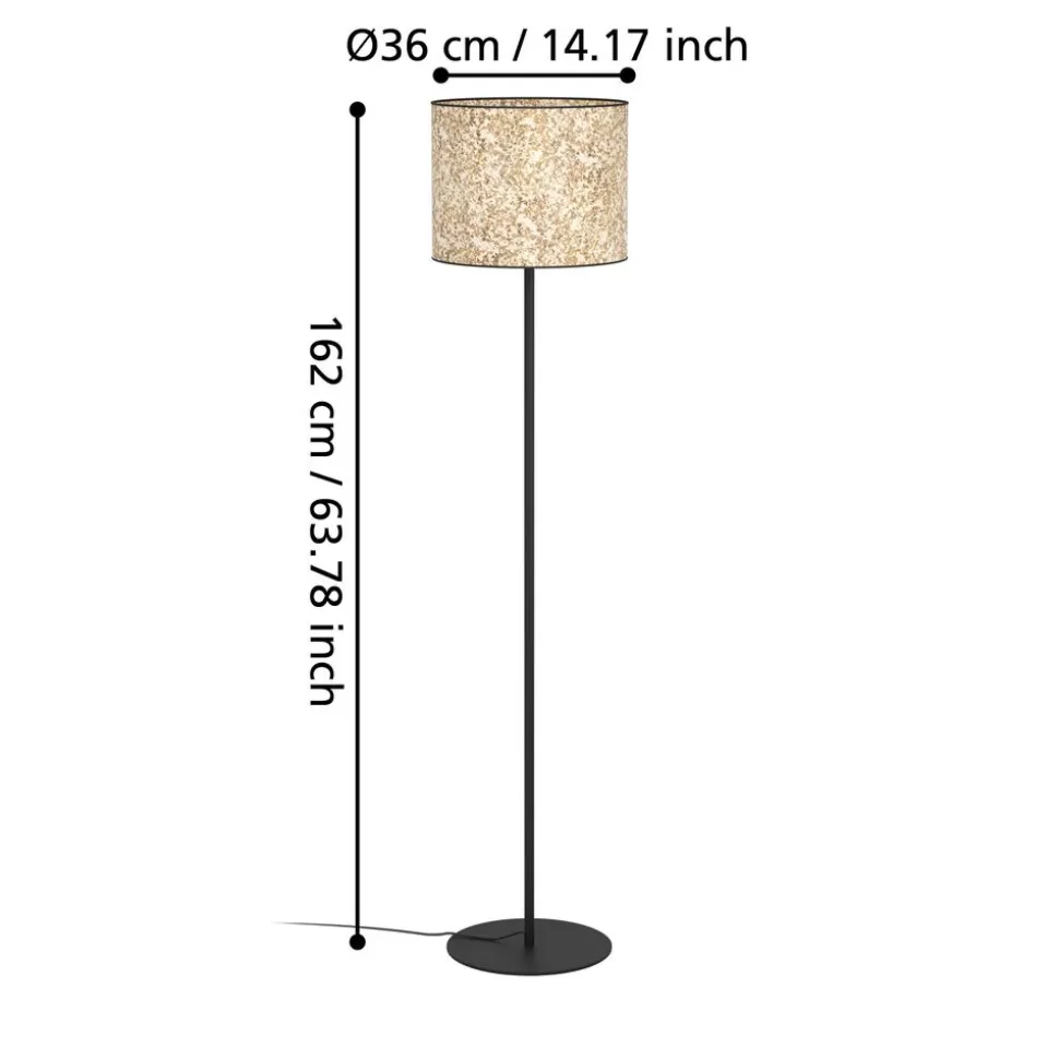 Eglo BUTTERBURN Staande lampen staal zwart / textiel met berkenbladeren beige, groen H: 1620 mm | Ø 360 mm