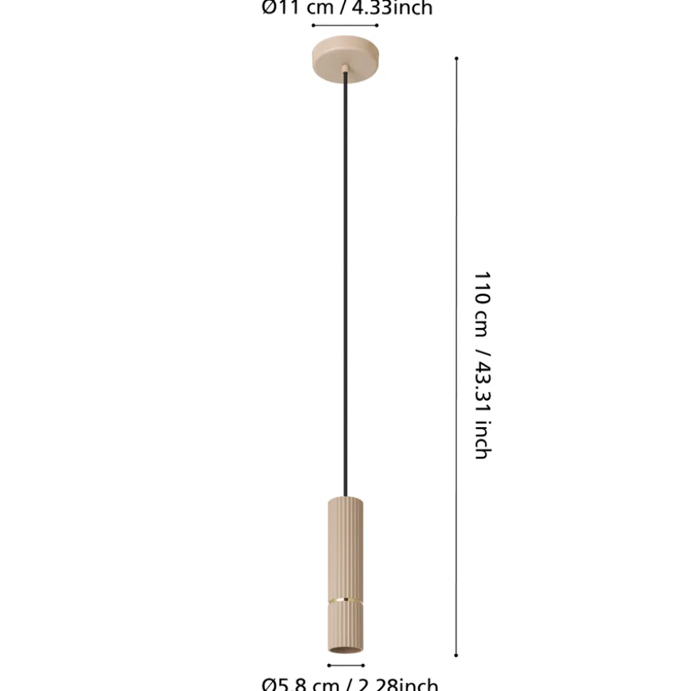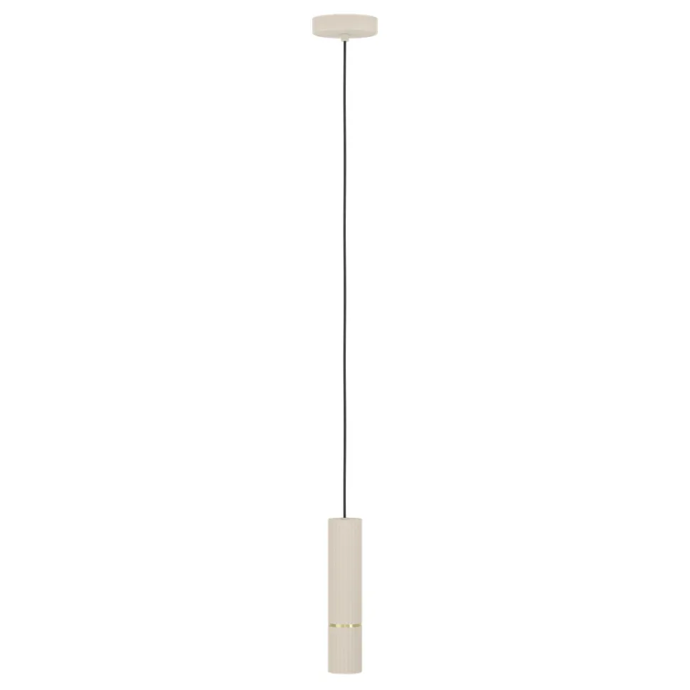 De CAMINIA pendel plafondlamp in zachte zandkleur met gouden detailring zorgt met zijn zachte ontwerp voor een eigentijdse toets aan een moderne spot hanglamp. Deze hanglamp komt met een GU10 lichtbron inclusief, die een warm wit licht schijnt. Dankzij de welvende structuur op de spot komt deze hanglamp tot zijn recht in een rustig en natuurlijk interieur.