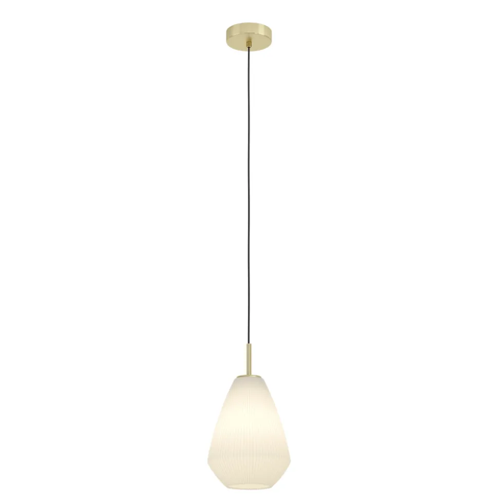 Eglo CAPRAROLA hanglamp staal geelkoper-geborsteld / glas satijn zand H: 1100 mm | Ø 200 mm